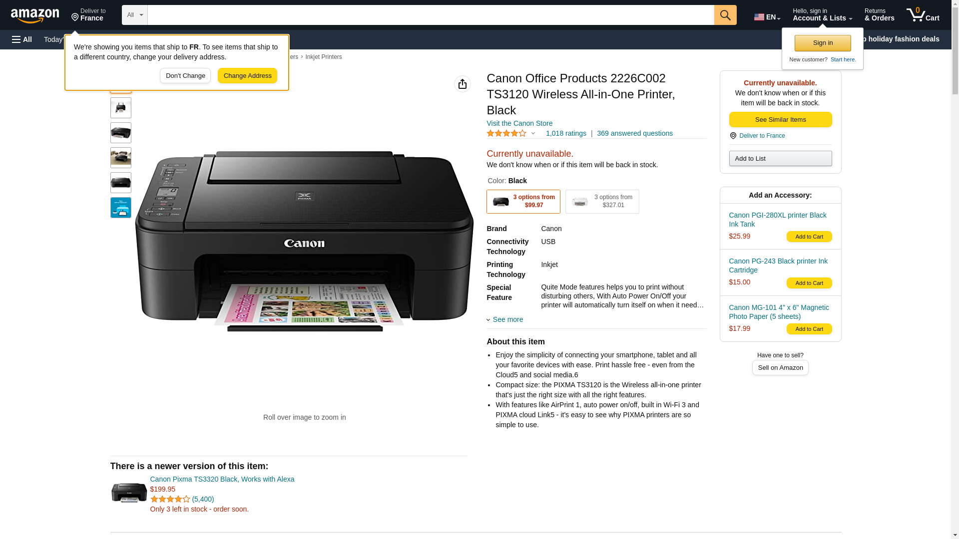 Canon Office Products 2226C002 TS3120 Wireless All-in-One Printer, Black