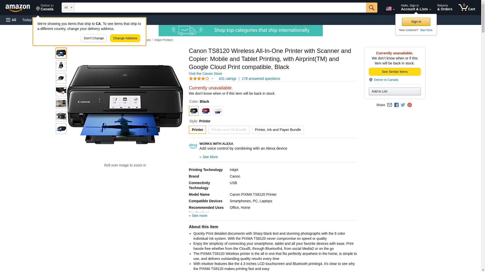 Canon Office Products TS8120 Wireless All-In-One Printer with Scanner and Copier: Mobile and Tablet Printing, with Airprint(TM) and Google Cloud Print compatible, Black, Works with Alexa