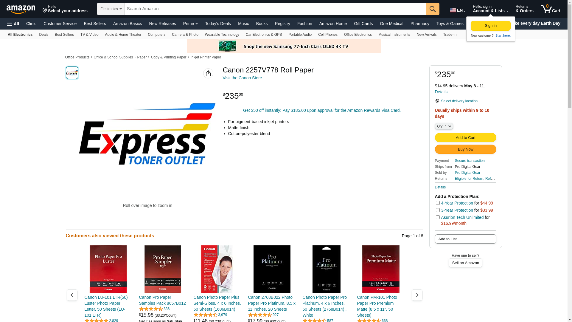 CANON 2257V778 Details about Canon Fine Art Artistic Matte Canvas Large Format Inkjet