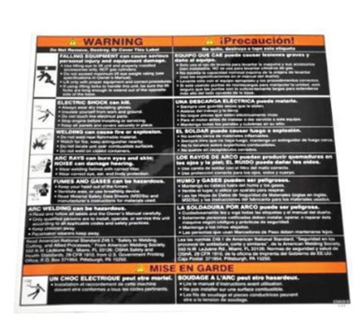 Airgas - MIL233639 - Miller? Bilingual Label "Warning General Precautionary CSA" For Trailblazer? 302 Air Pak? Portable Engine Driven Welder/Generator (For Use With Air Pak? Air Compressor)