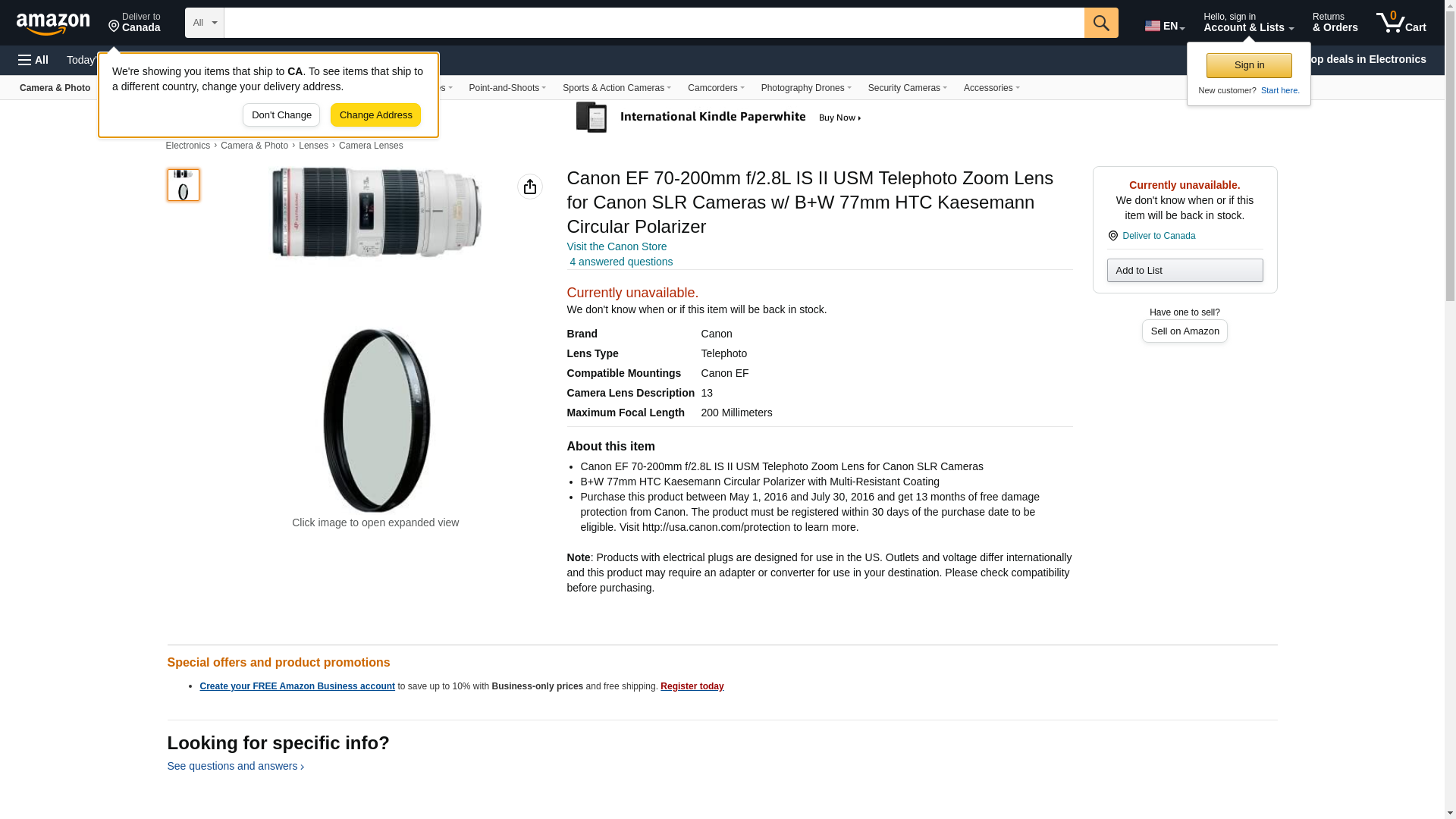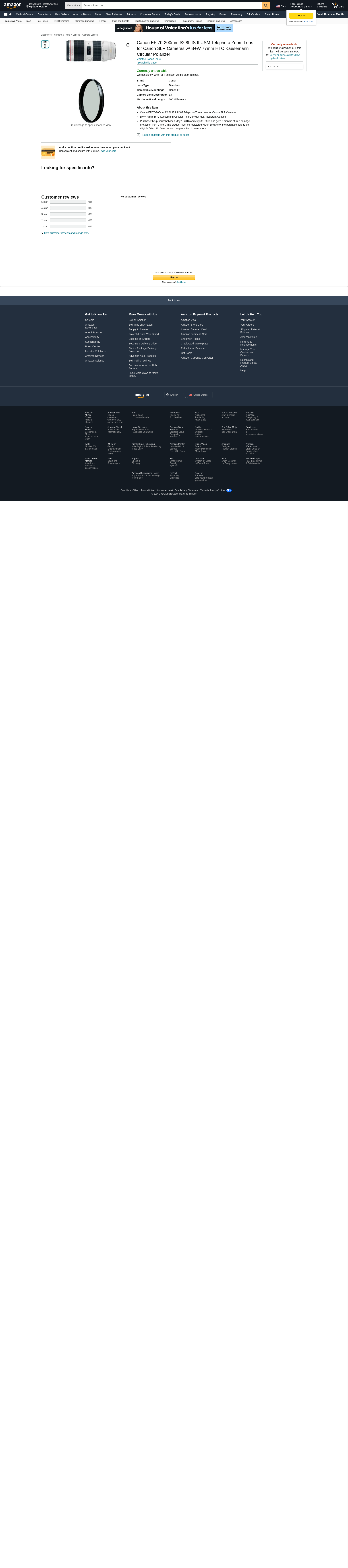 - Canon EF 70-200mm f/2.8L IS II USM Telephoto Zoom Lens for Canon SLR Cameras