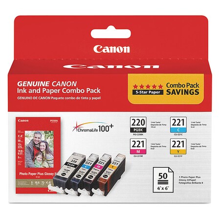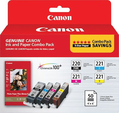Canon 2945B011 Ink and Paper Combo Pack PGI-220, CLI-221 and Photo Paper - Black, yellow, cyan, magenta - ink tank / paper kit - for PIXMA iP3600, iP4600, iP4700, MP560, MP620, MP640, MP640R, MP980, MP990, MX860, MX870