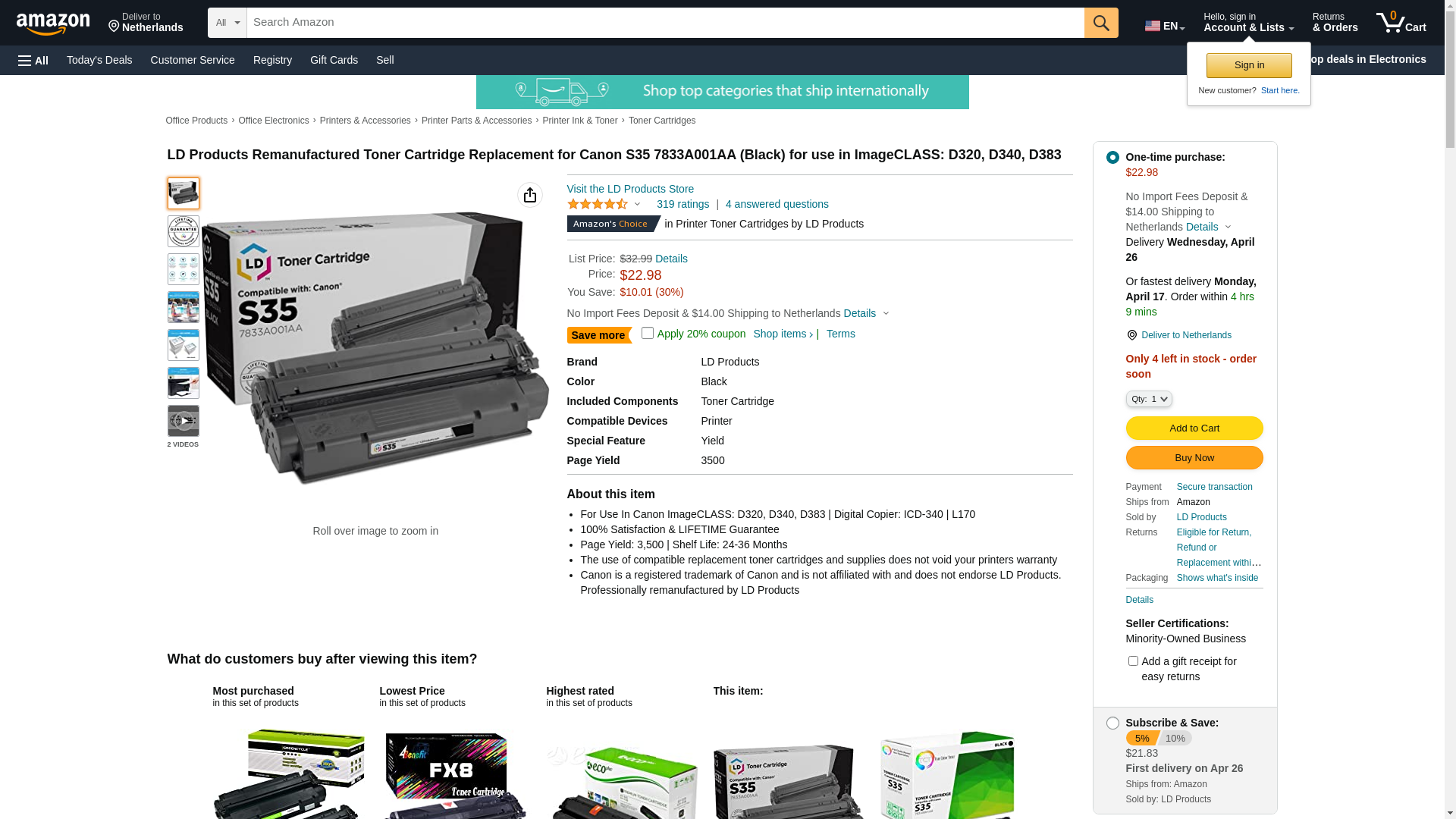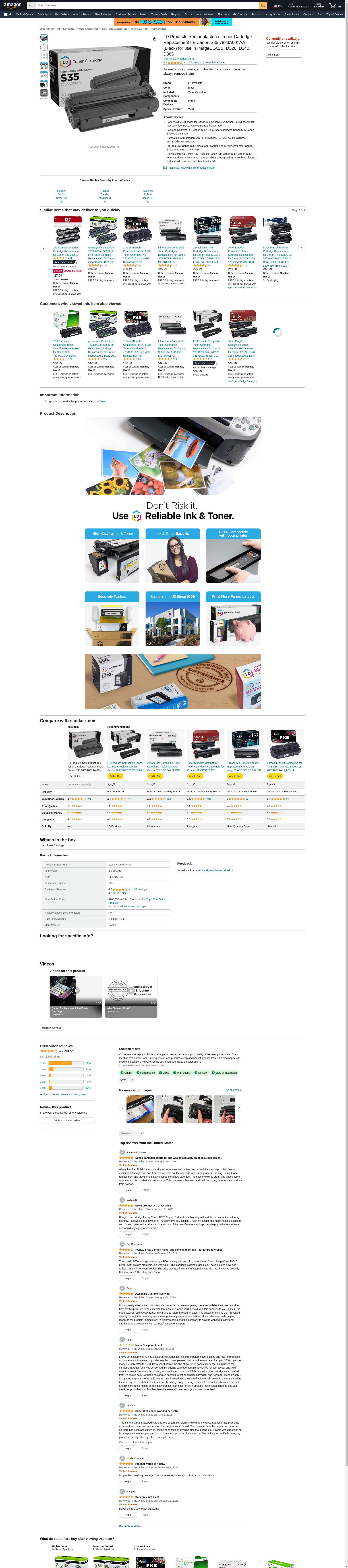 | Feature | OEM toner cartridge for Canon\xc2\xae ICD-320, 340 (S35) produces 3,500 pages. |