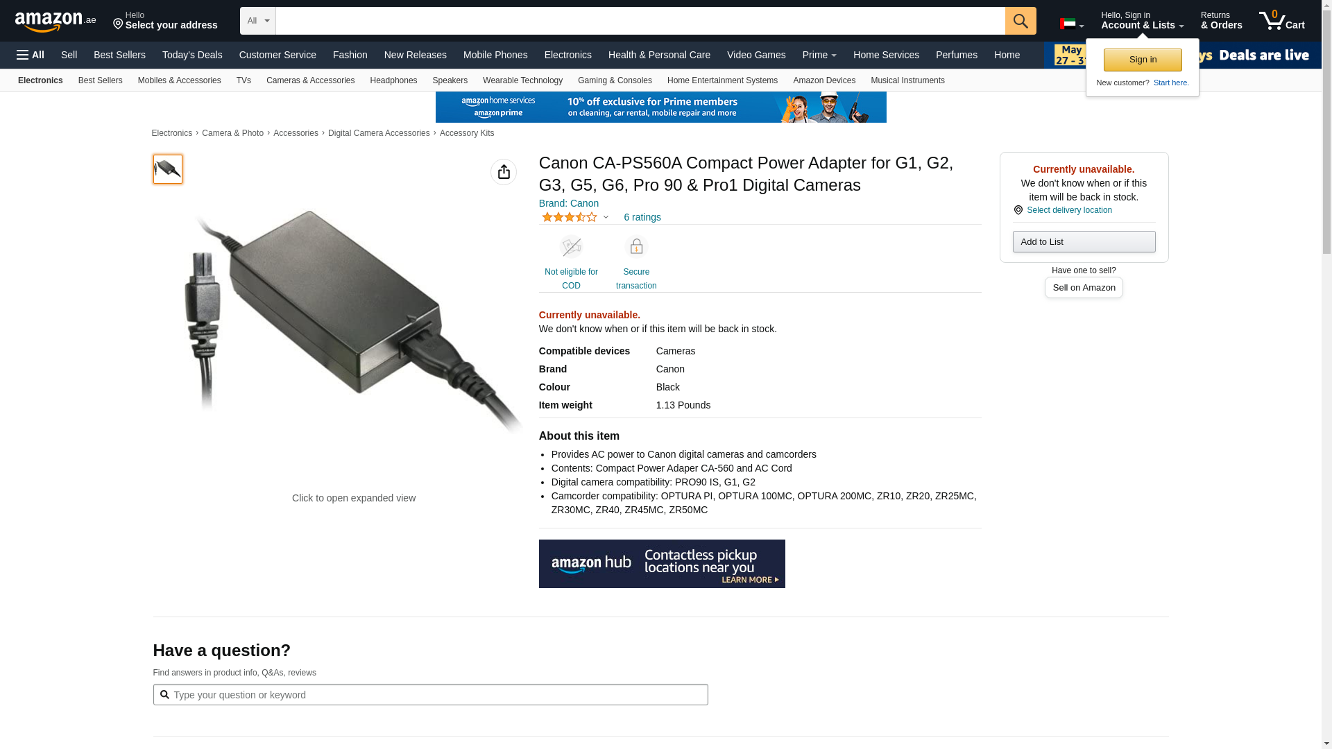 | Feature | Provides AC power to Canon digital cameras and camcorders |