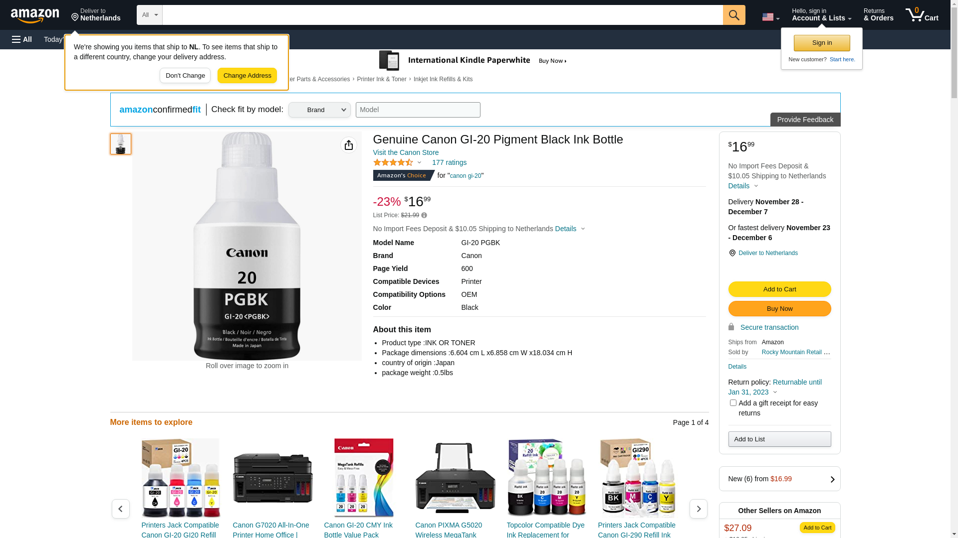 Canon GI-20 PGBK Ink Bottle, Compatible to PIXMA G6020 and G5020 MegaTank Printers