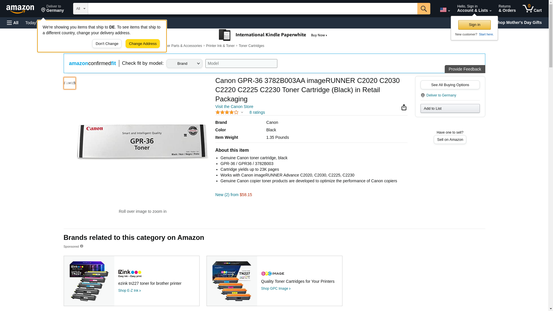 Canon GPR-36 3782B003AA imageRUNNER C2020 C2030 C2220 C2225 C2230 Toner Cartridge (Black) in Retail Packaging