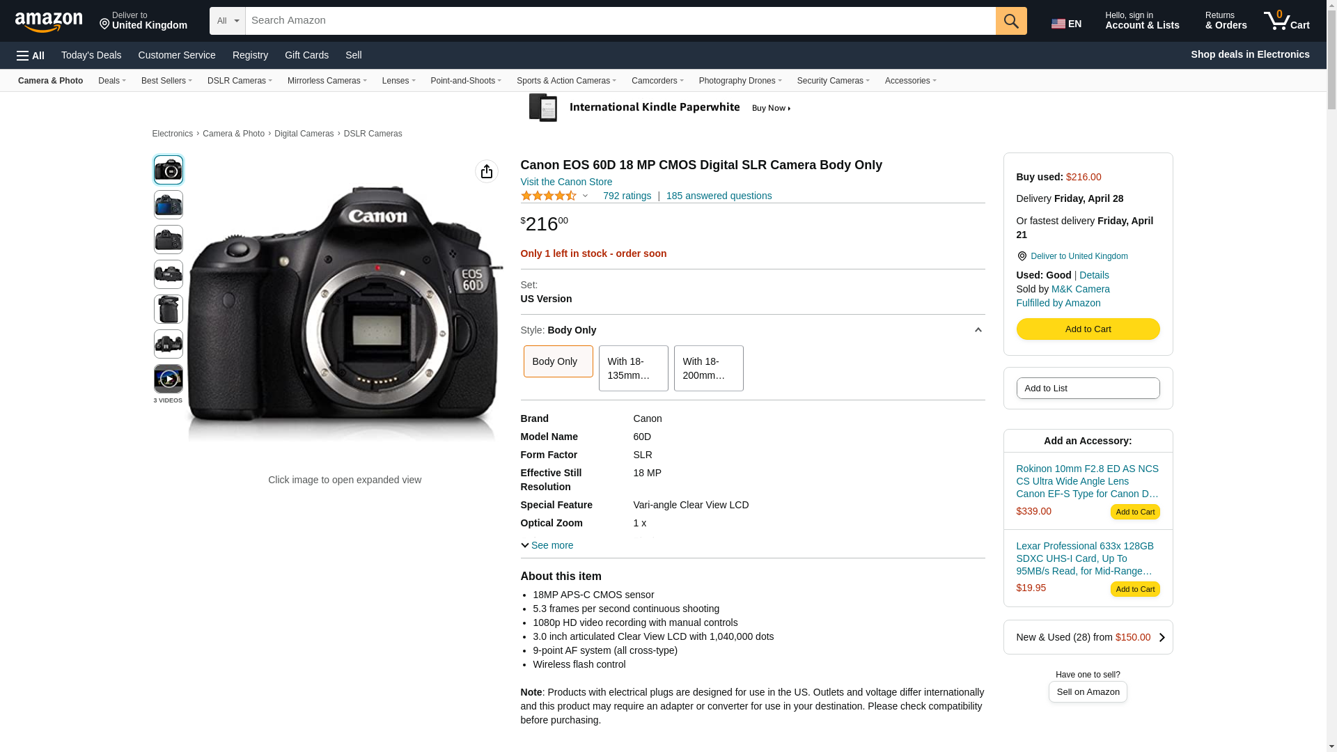 Canon EOS 60D 18 MP CMOS Digital SLR Camera Body Only (Renewed)