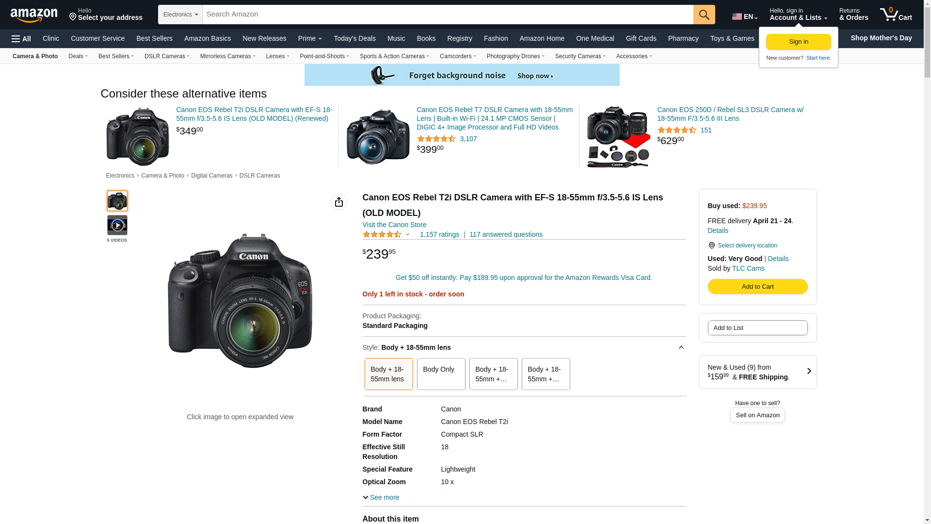 USED Canon EOS Digital Rebel T2i Digital w/18-55mm IS II Lens