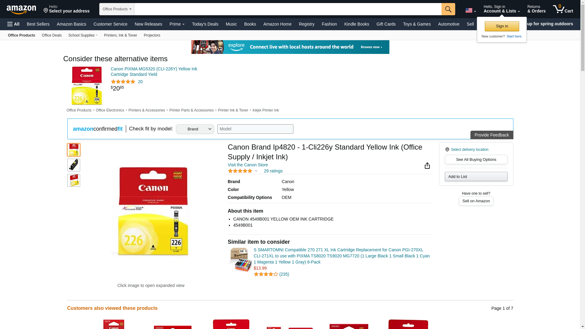 - Canon 4549B001 Original (OEM) Yellow Ink Tank Cartridge CLI-226Y