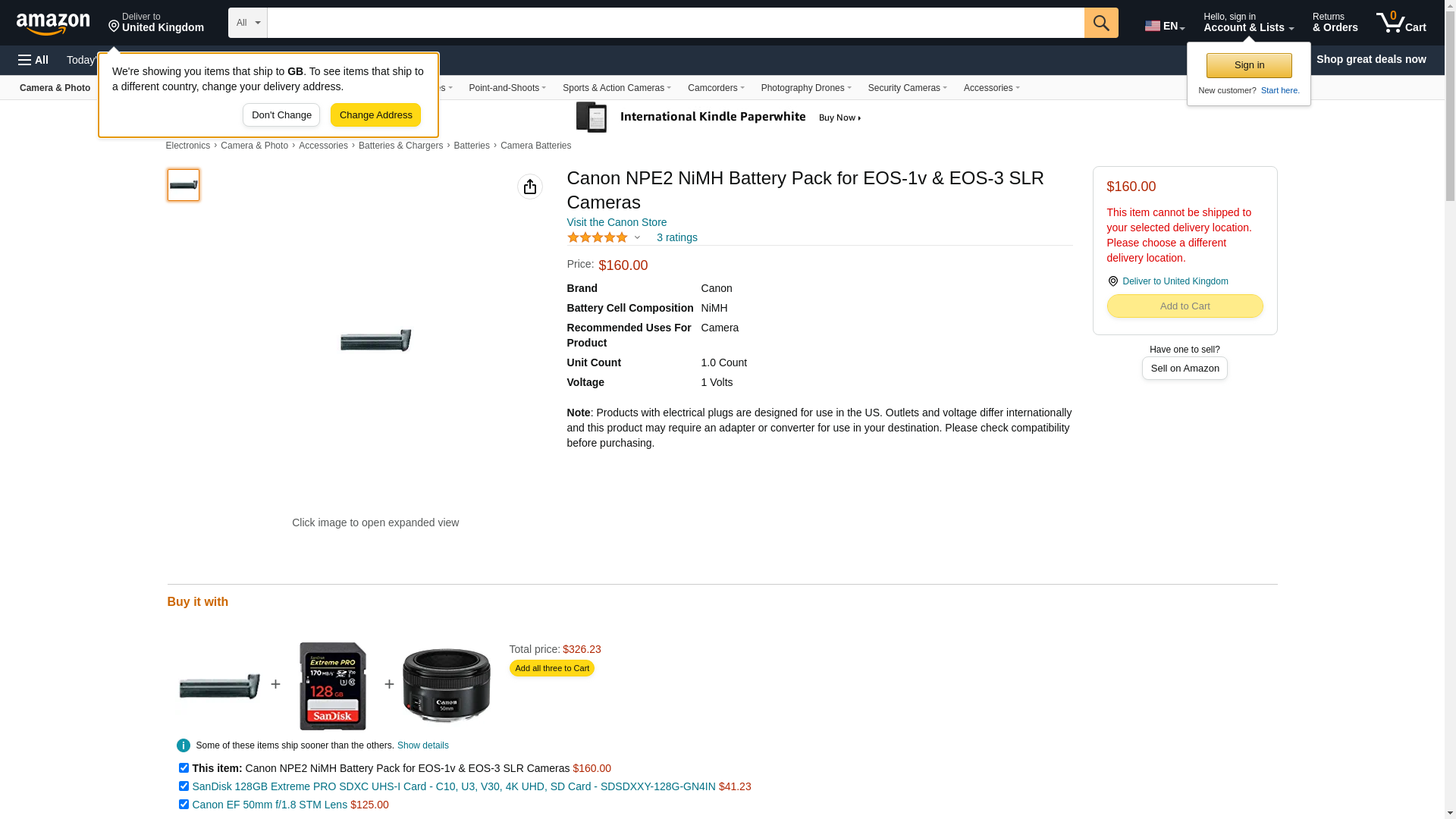 Canon NPE2 NiMH Battery Pack for EOS-1v & EOS-3 SLR Cameras