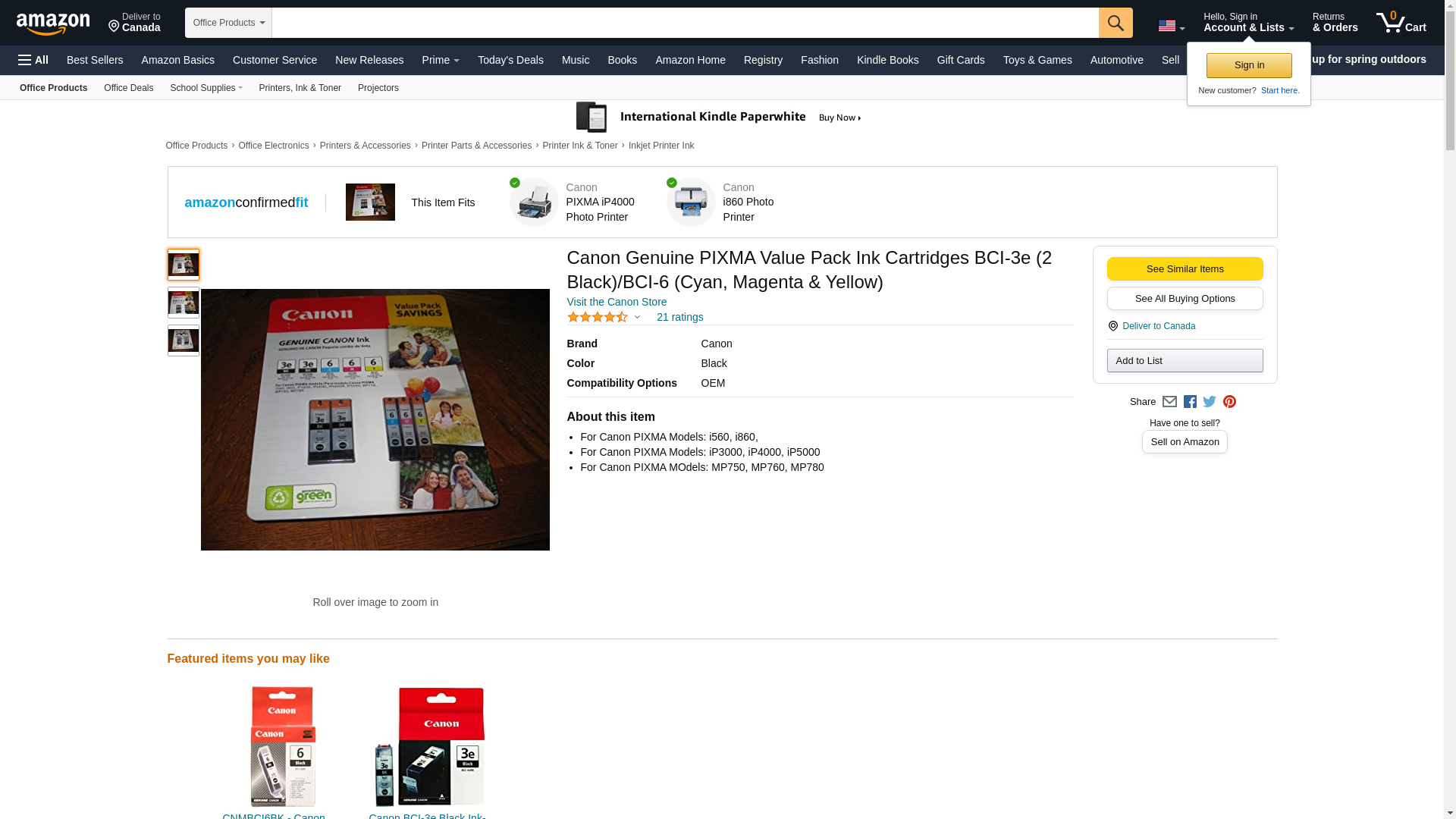 | Feature | Genuine Canon BCI-6 Black/Color 6-Pack Value Pack (Black, Cyan, Magenta, Yellow, Photo Magenta and Photo Cyan) |