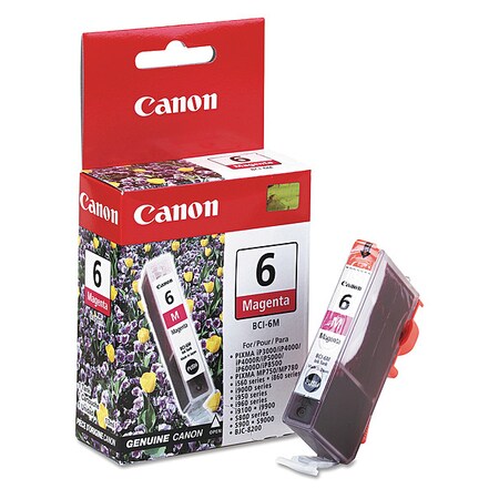 Shipping Height: 1.2 Shipping Width: 3.0 Master Pack Qty: 72 General Information Manufacturer: Canon, Inc Manufacturer Part Number: 4707A003 Brand Name: Canon Product Model: BCI-6M Product Name: BCI-6M Ink Cartridge Marketing Information: Ink tanks are designed for use with Canon BJC8200, I960, I9100, I9900, PIXMA IP3000, IP4000/R, IP5000, IP6000, IP8500, MP750, MP760, MP780, S800, S820, S830D, S900, S8200 and S9000. Canon Bubble-Jet printers produce flawless photographic output through Canon's MicroFine Droplet Technology, combining cutting edge breakthrough in ink droplet size, accurate ink application and consistent droplet quality and ink composition. Ink tank yields 370 pages at 5 percent coverage. Packaged Quantity: 1 Each Package Type: Retail Product Type: Ink Cartridge Technical Information Print Technology: Inkjet Print Color: Magenta Typical Print Yield: 370 Page Miscellaneous Compatibility: Canon Printers: BJC8200 I560 I860 I900D I950 I960 I9900 Canon PIXMA Printers: IP3000 IP4000 IP4000R IP5000 IP6000D IP8500 MP750 MP760 MP780 S800 S820 S830D S900 S8200 S9000 Recycled: No Recycled Content: 0% Post-consumer-waste%: 0% Country of Origin: Japan