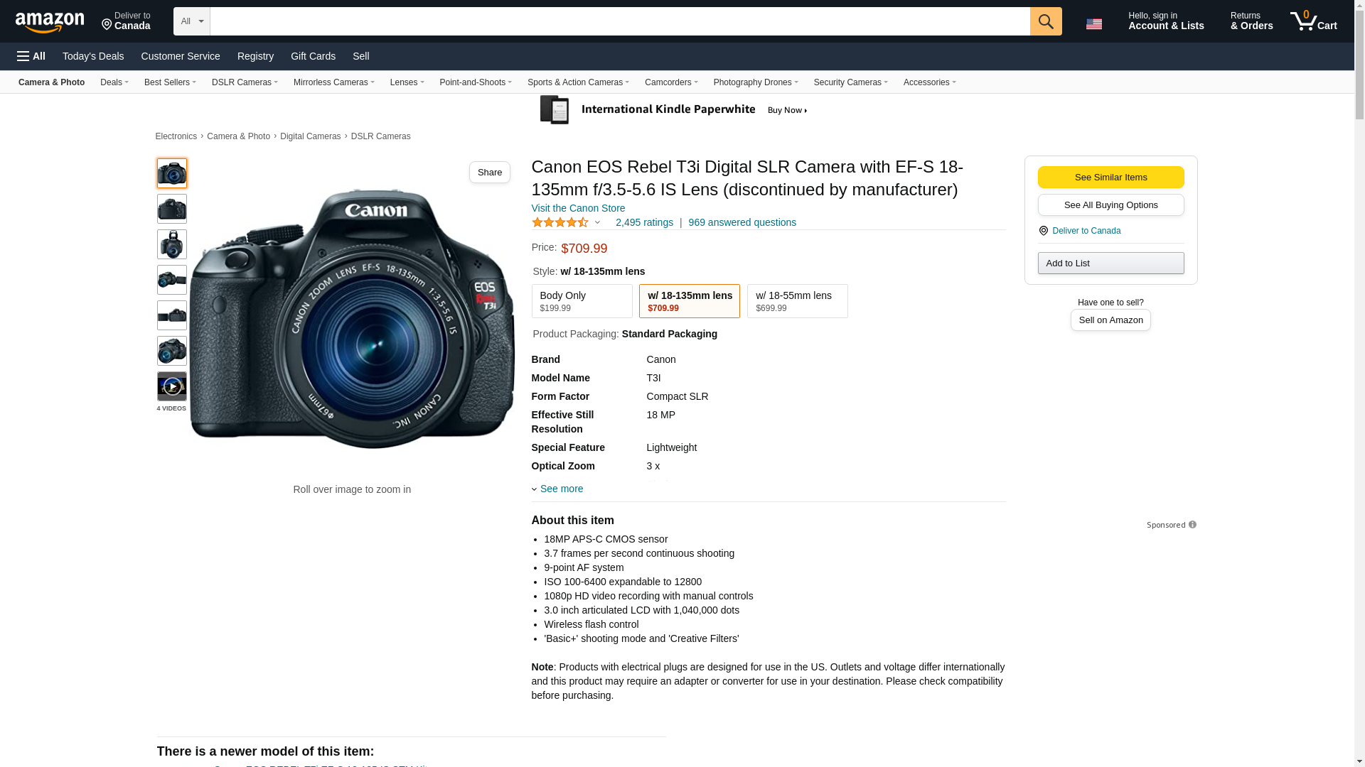 Canon EOS Rebel T3i Digital SLR Camera with EF-S 18-135mm f/3.5-5.6 IS Lens (discontinued by manufacturer)