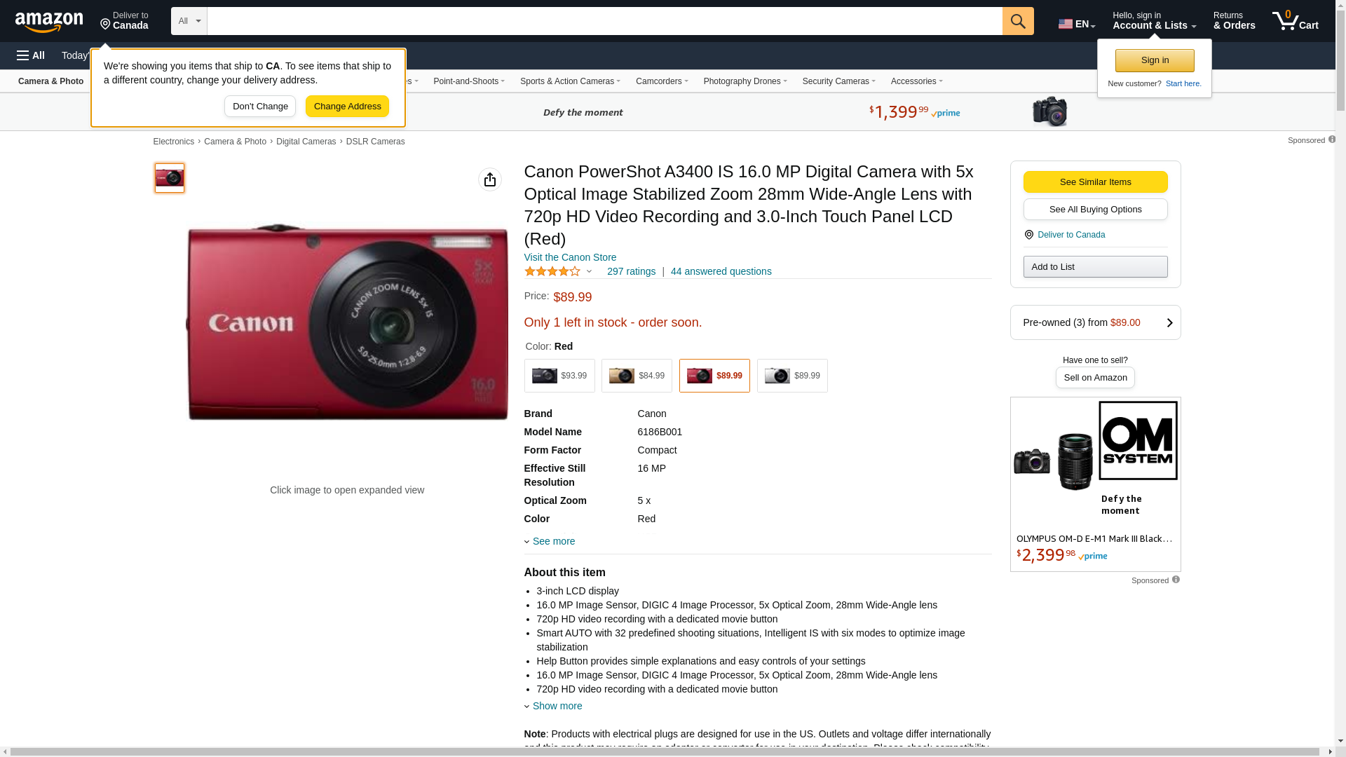 Canon PowerShot A3400 is 16.0 MP Digital Camera with 5X Optical Image Stabilized Zoom 28mm Wide-Angle Lens with 720p HD Video Recording and 3.0-Inch Touch Panel LCD (Red)