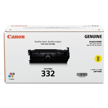 Genuine Canon inks, toner, and paper provide high quality and long lasting prints when you used in combination with our line of Canon printers. There are various types of ink, paper, and toner to fulfill your needs for printing documents and photos whether personally or professionally. Manufacturer: Canon, Inc. Manufacturer Part Number: 6260B012. Brand Name: Canon. Product Model: 332. Product Name: 332 Toner Cartridge. Packaged Quantity: 1 / Box. Product Type: Toner Cartridge. [Technical Information] Print Technology: Laser. Print Color: Yellow. Yield Type: High. Typical Print Yield: 6400 Pages. [Miscellaneous] Device Supported: Printer. Compatibility: Canon imageCLASS Printer LBP7780Cdn.