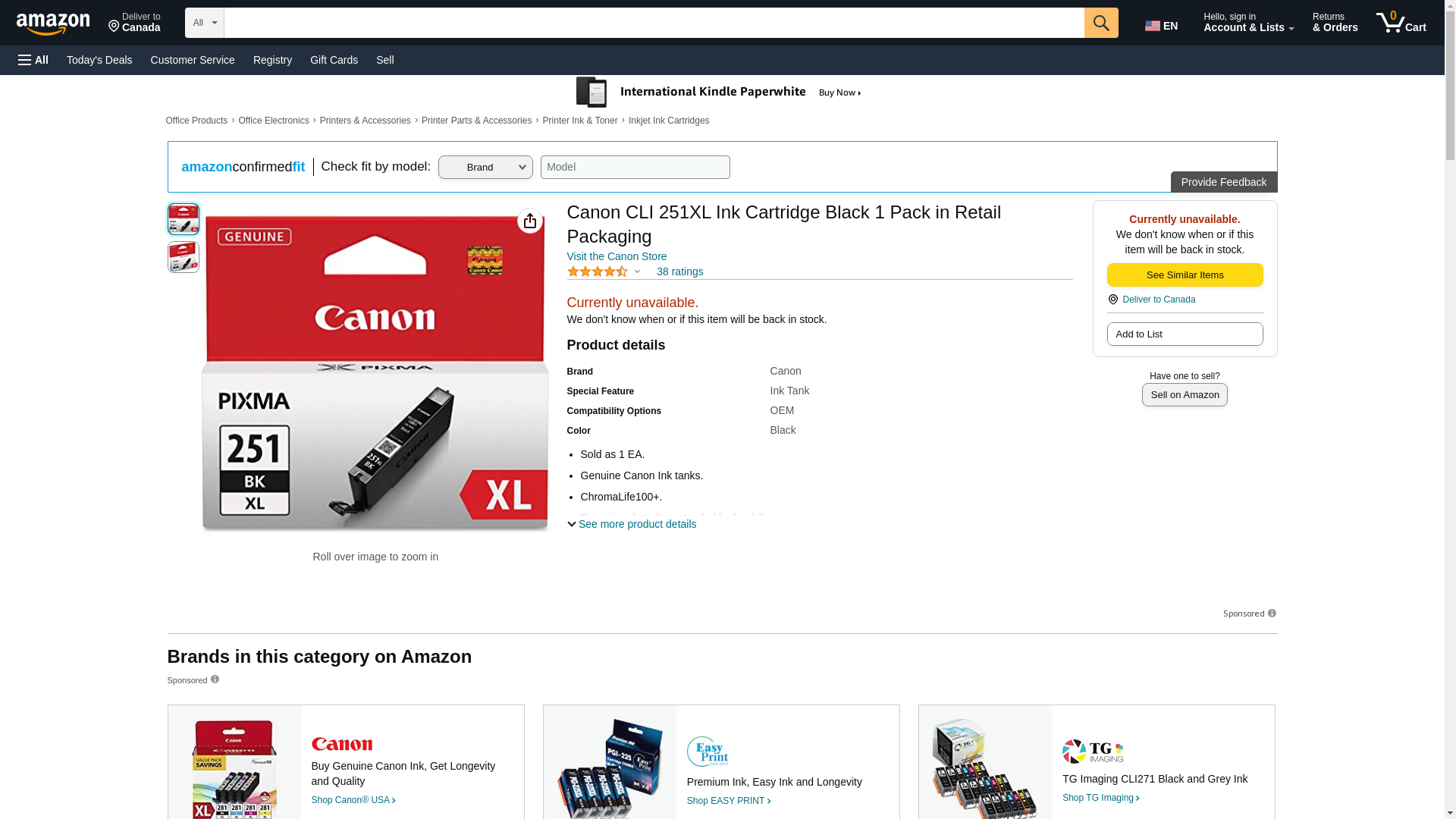 | Feature | Canon 6448B001 OEM Ink - (CLI-251XL) PIXMA iP7220 iP8720 iX6820 MG5420 MG5520 MG6320 MG7120 MX922 High Yield Black Ink Tank |