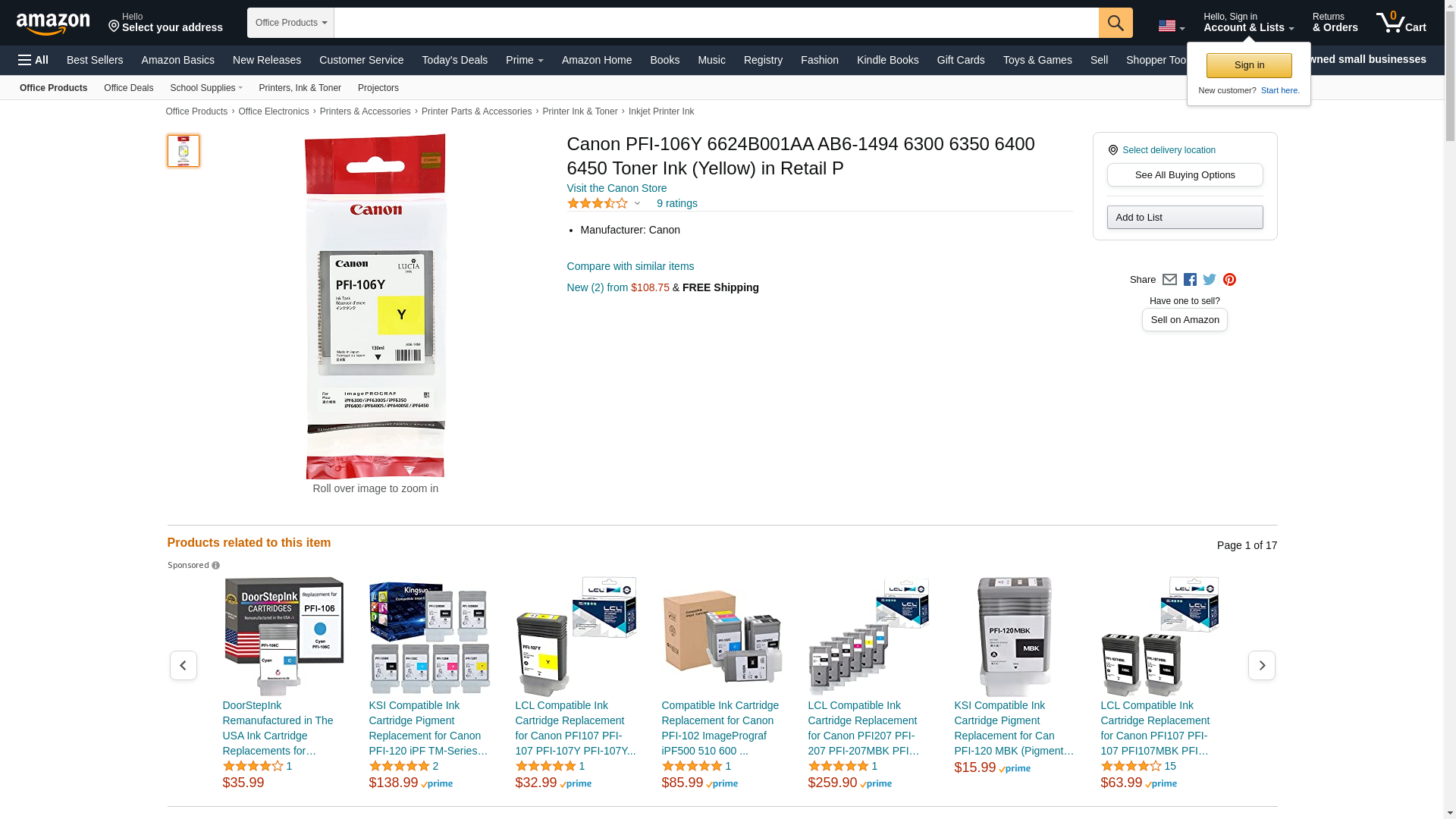 Canon 6624B001 PFI Original Ink Tank, Yellow