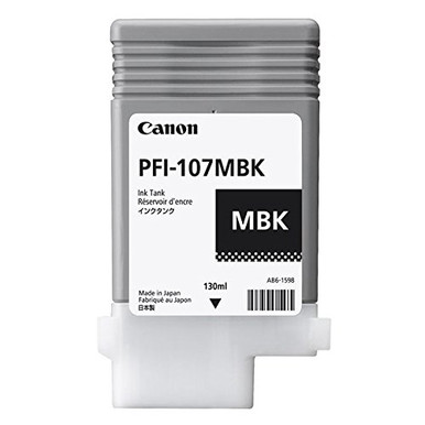 Experience exceptional performance and reliability with this Canon PFI-107MBK matte black ink tank. Get high productivity with minimal maintenance from this matte black ink tank. The vivid black color offers high contrast against white paper, helping text stand out for easy reading, and the fade-resistant ink dries fast to prevent smudges. This Canon PFI-107MBK ink tank is packaged individually so you can select the exact quantity you need, and it's easy to install in a wide range of Canon wide-format printers. Get standard-yield capacity per ink tank while enjoying cost savings. The package includes one matte black ink tank. Original Canon ink tanks deliver long-lasting quality to all your photos and documents. Compatible with: Canon imagePROGRAF iPF670, iPF670 MFP L24, iPF670 MFP L24e, iPF680, iPF685, iPF770, iPF770 MFP L36, iPF770 MFP L36e, iPF770 MFP M40, iPF780, iPF785.