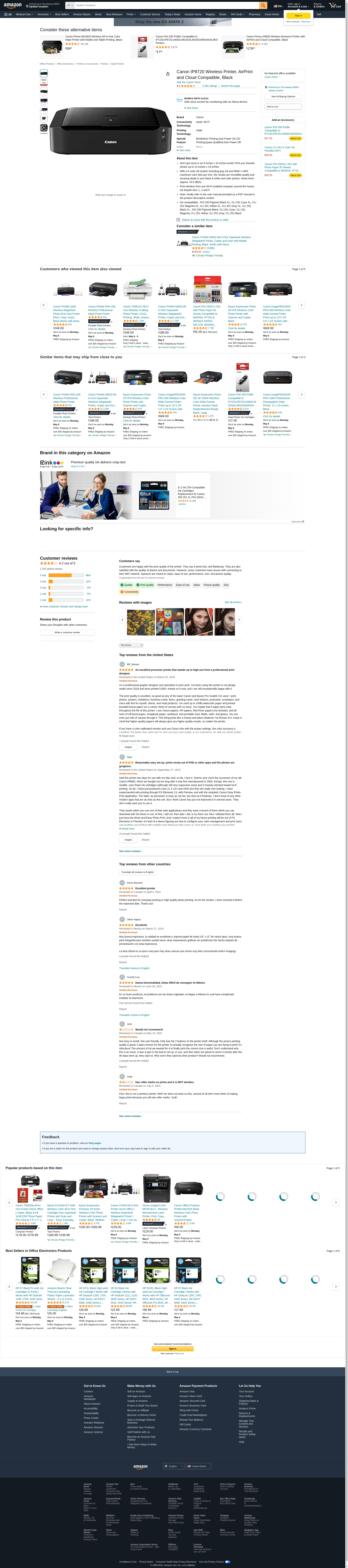 Canon USA 8746B002 Canon PIXMA iP8720 Wireless Inkjet Photo Printer-Color-Wifi-4 inch x 6 inch PHOTO36 Sec.-Up