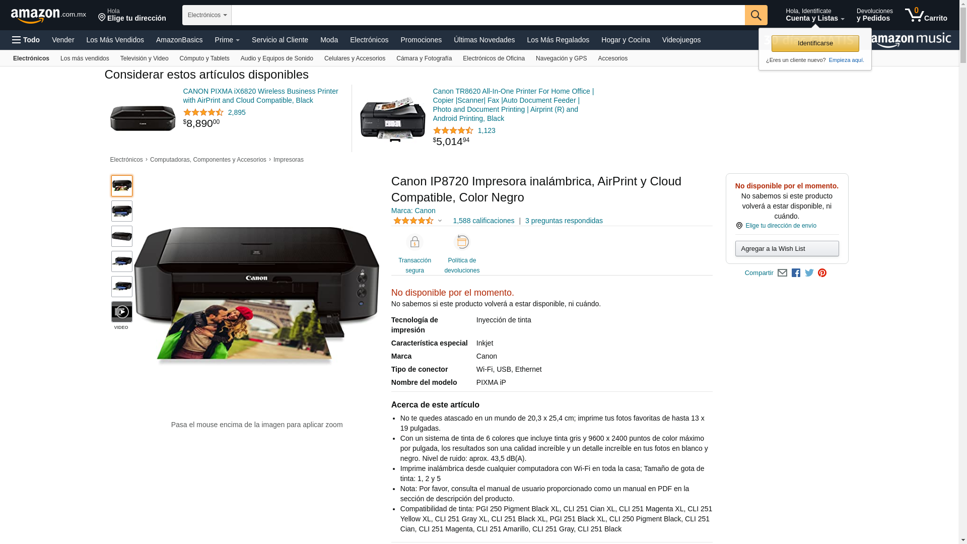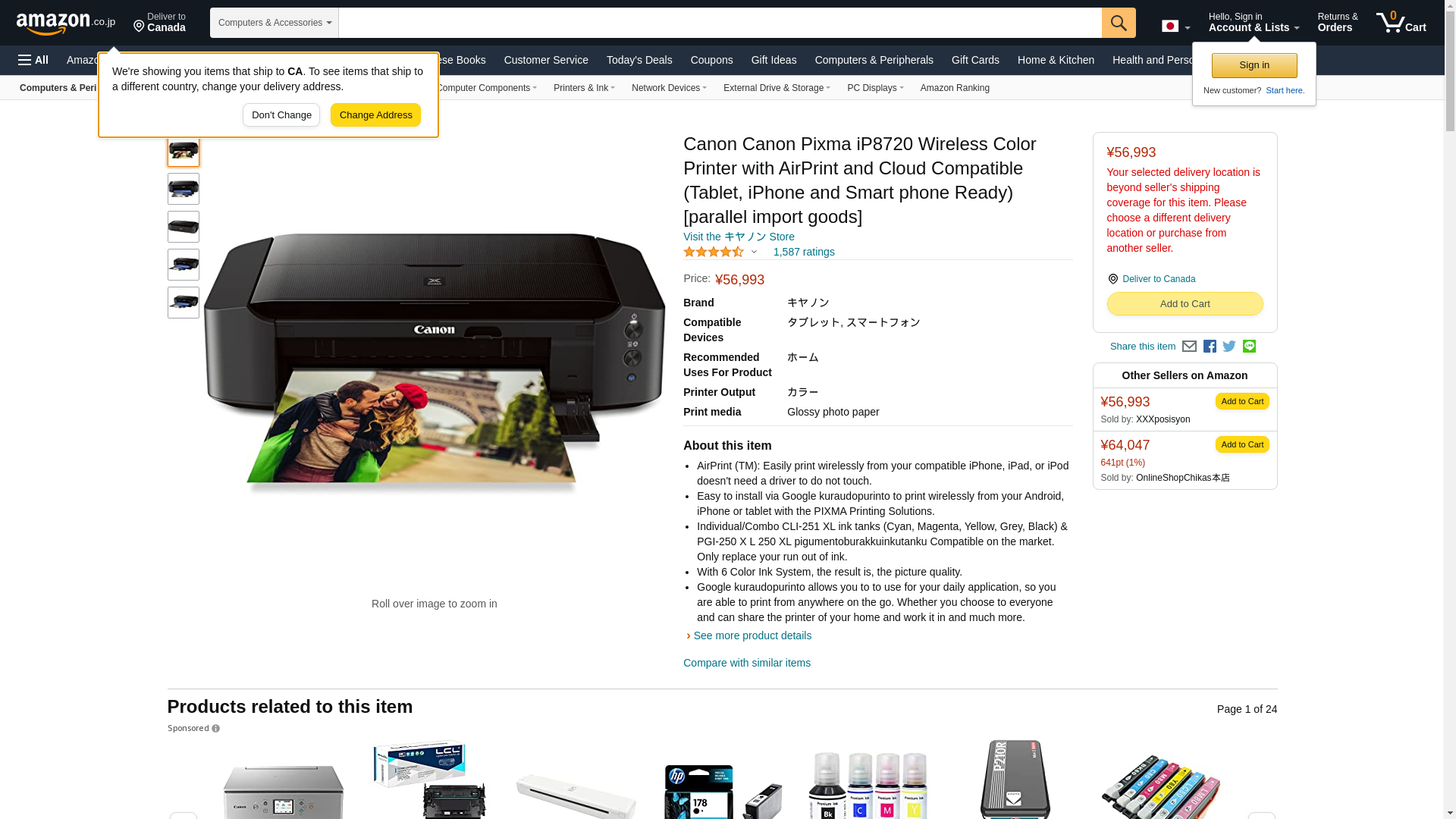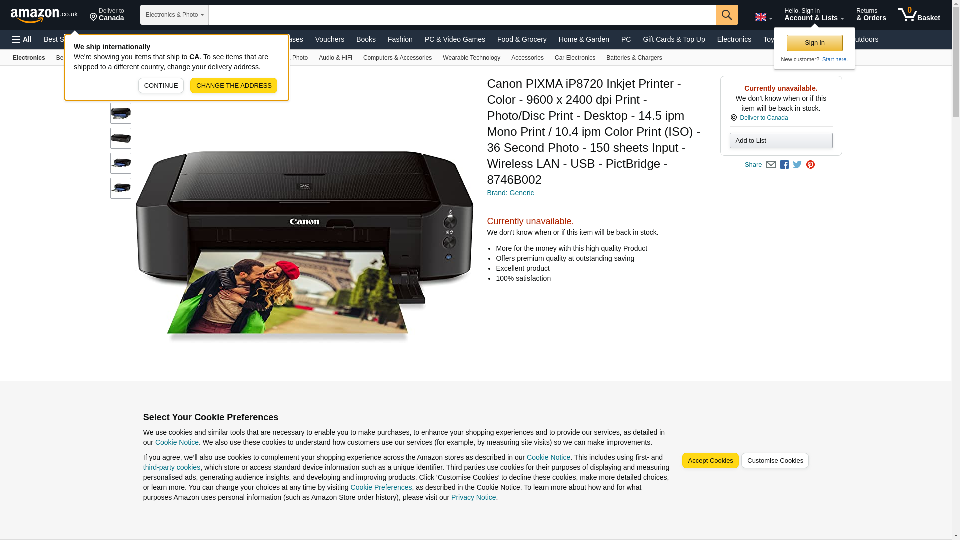 CNM8746B002 - PIXMA iP8720 Wireless Photo Wireless Inkjet Printer
