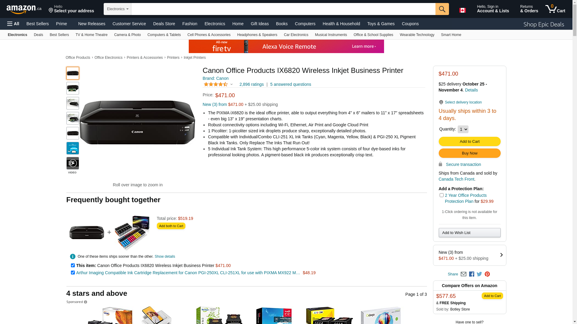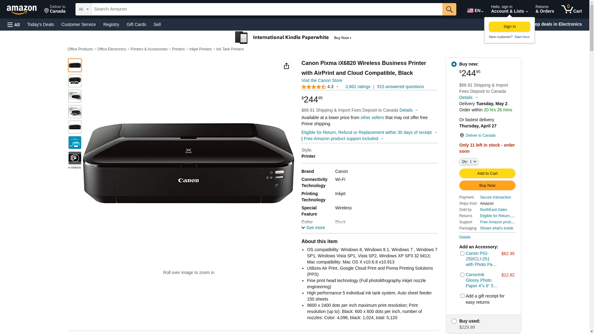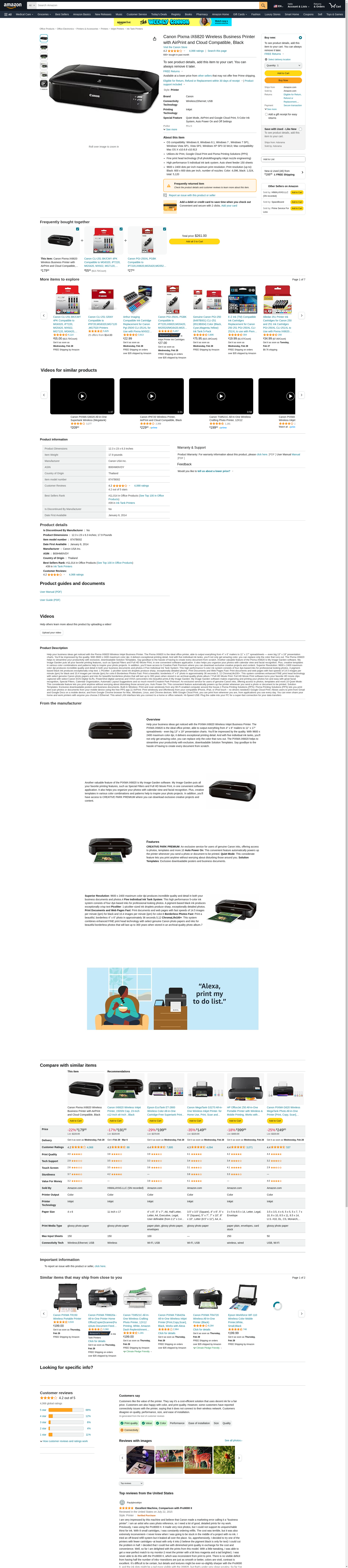 Help your business ideas get noticed with the PIXMA iX6820 Wireless Inkjet Business Printer. The PIXMA iX6820 is the ideal office printer, able to output everything from 4" x 6" mailers to 11" x 17" spreadsheets--even big 13" x 19" presentation charts. You'll be impressed by the quality. With 9600 x 2400 maximum color dpi, it delivers exceptional printing detail. With five individual ink tanks, you'll not only get amazing color, you can replace only the color that runs out. The PIXMA iX6820 helps to streamline your productivity with exclusive, downloadable Solution Templates. Say goodbye to the hassle of having to create every document from scratch. Maximum Print Speed (Black): 15 ppm; Maximum Print Speed (Color): 10 ppm; Print Resolution (Black) (Width x Height): 600 x 600 dpi; Print Resolution (Color) (Width x Height): 9600 x 2400 dpi.