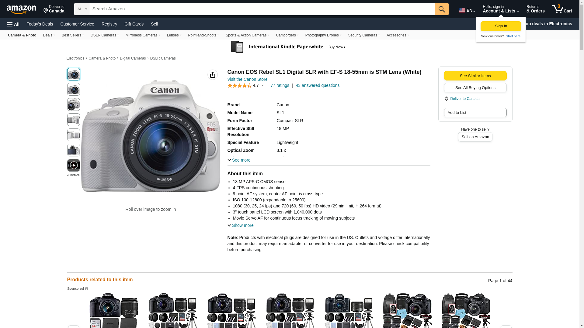 Canon EOS Rebel SL1 Digital SLR with EF-S 18-55mm is STM Lens (White)