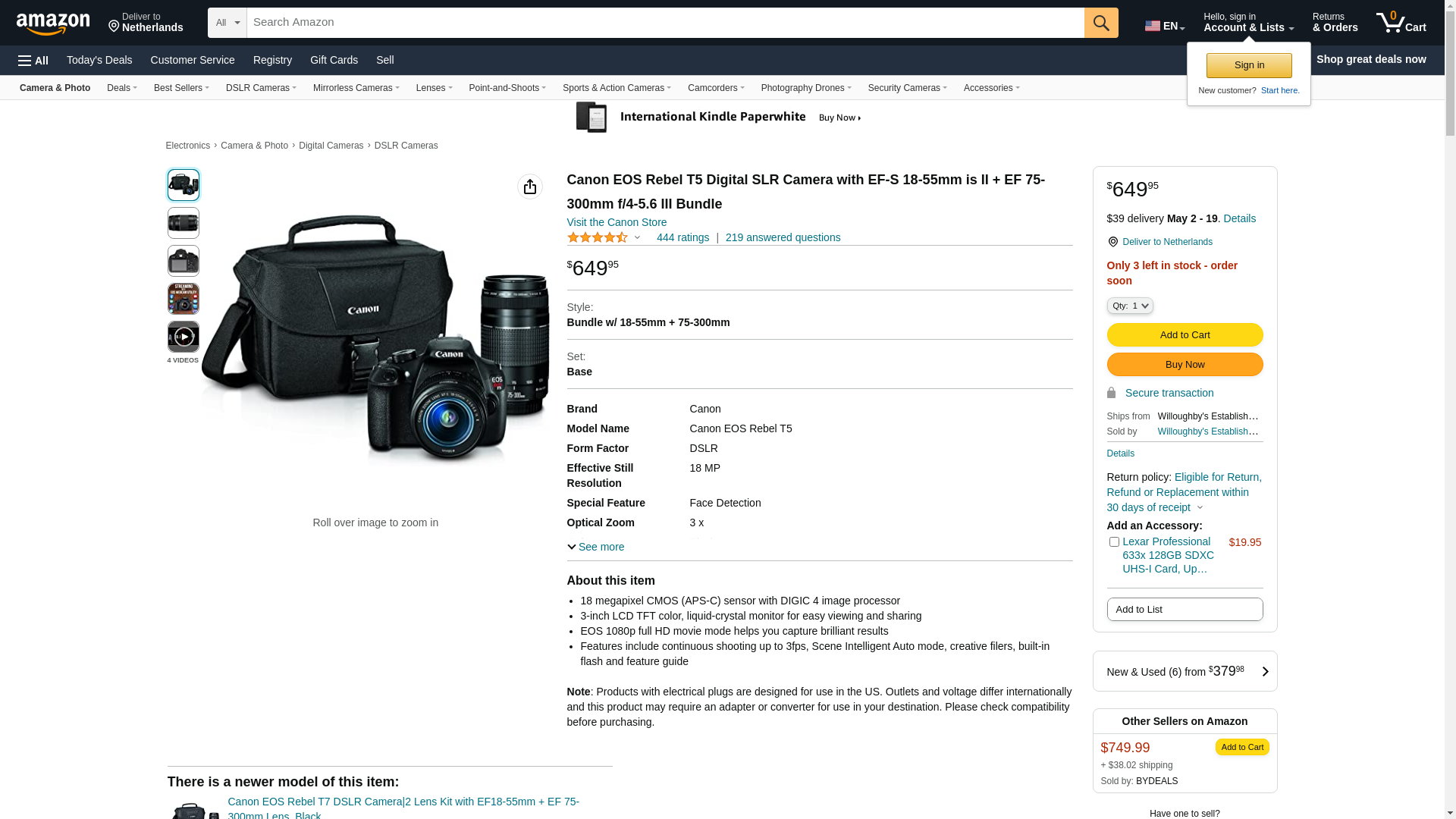 Canon EOS Rebel T5 Digital SLR Camera with EF-S 18-55mm is II + EF 75-300mm f/4-5.6 III Bundle
