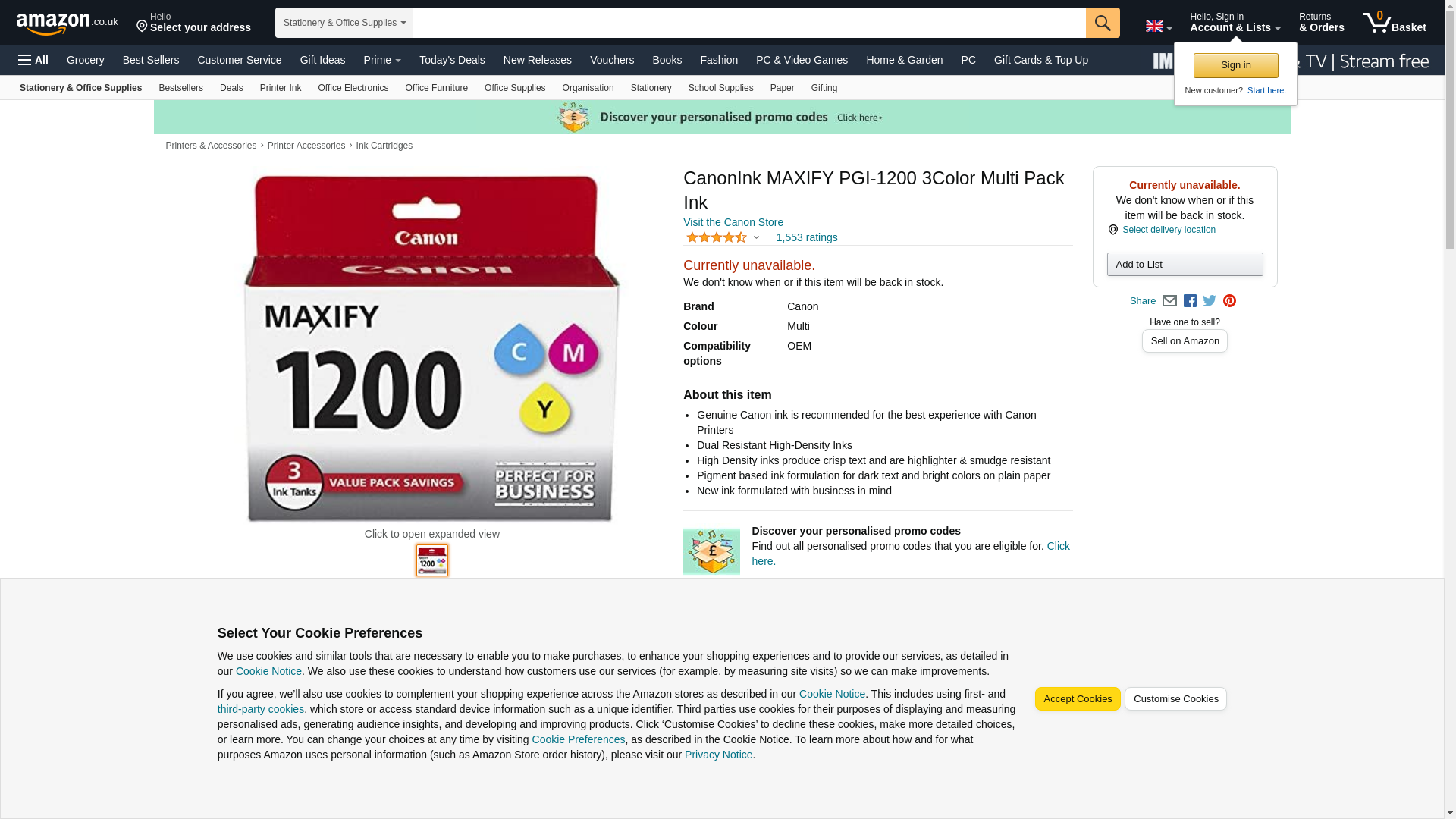 CanonInk MAXIFY PGI-1200 3Color Multi Pack Ink