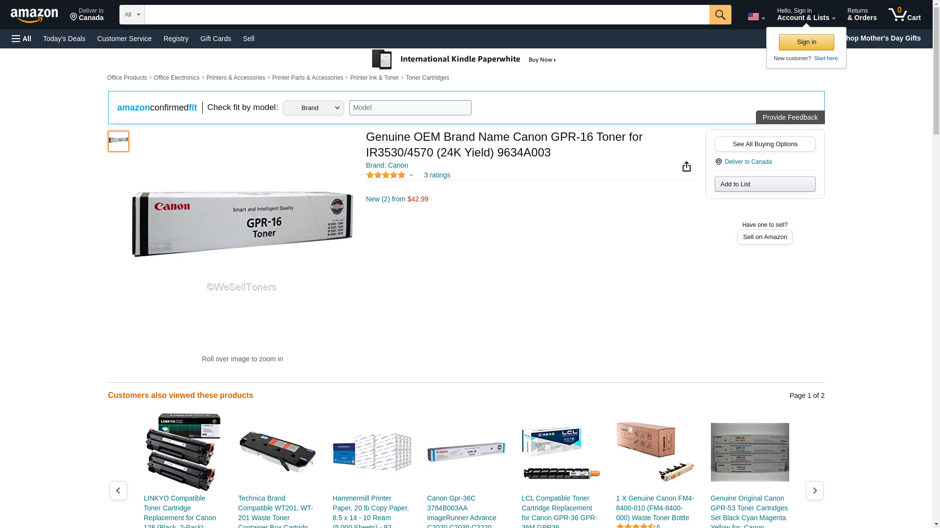 Canon GPR16 Toner Cartridge, Black - in Retail Packaging