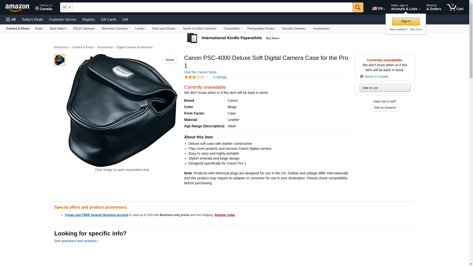 Canon PSC-4000 Deluxe Soft Digital Camera Case for the Pro 1
