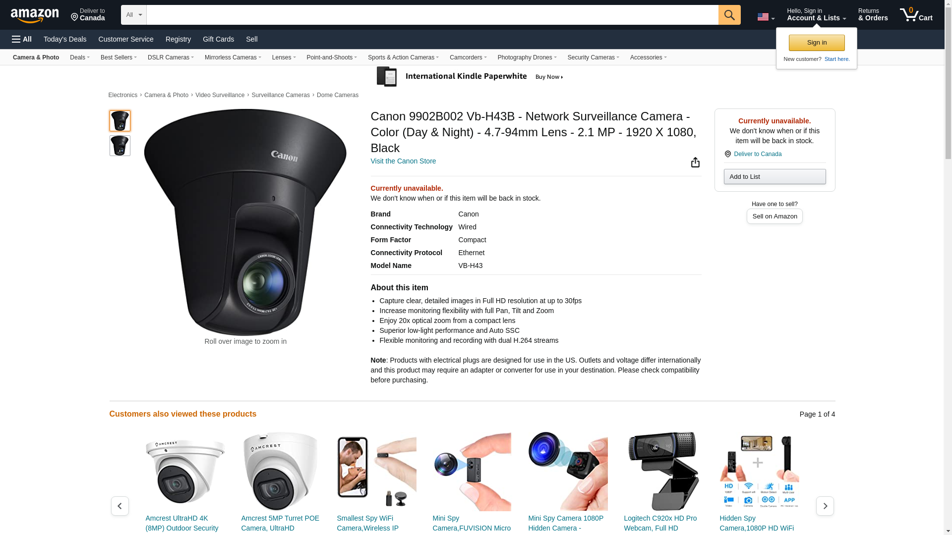 Canon 9902B002 Vb-H43B - Network Surveillance Camera - Color (Day & Night) - 4.7-94mm Lens - 2.1 MP - 1920 X 1080, Black