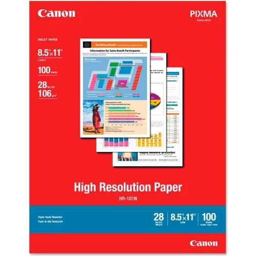 The Excellent Quality HR-101,HIGH RESOLUTION PAPER, 8.5x11 - Premium Paper For Professional Results:Optimize output resolution to create near-photographic images. This paper is great when you want high-quality color output to produce winning reports and eye-catching graphics. Use with genuine Canon Photo Inks for true photo-quality output.