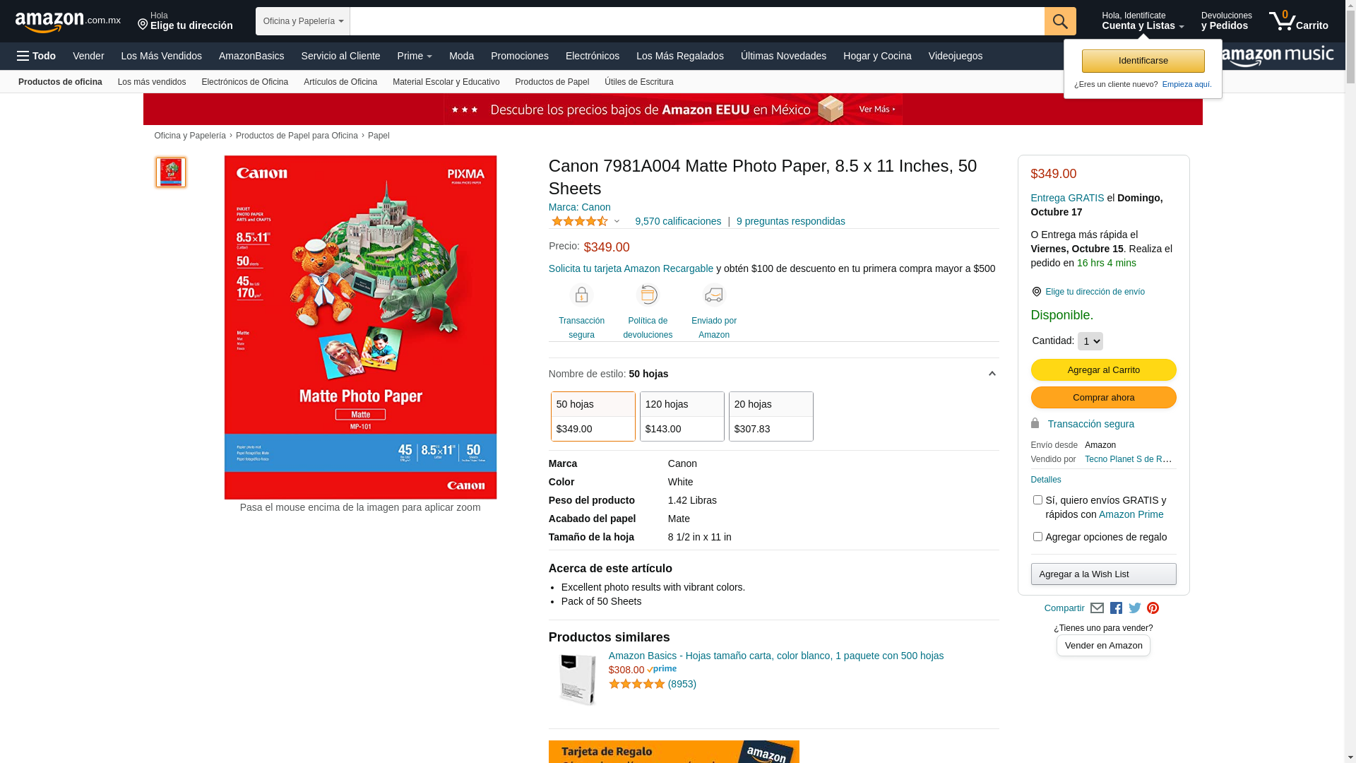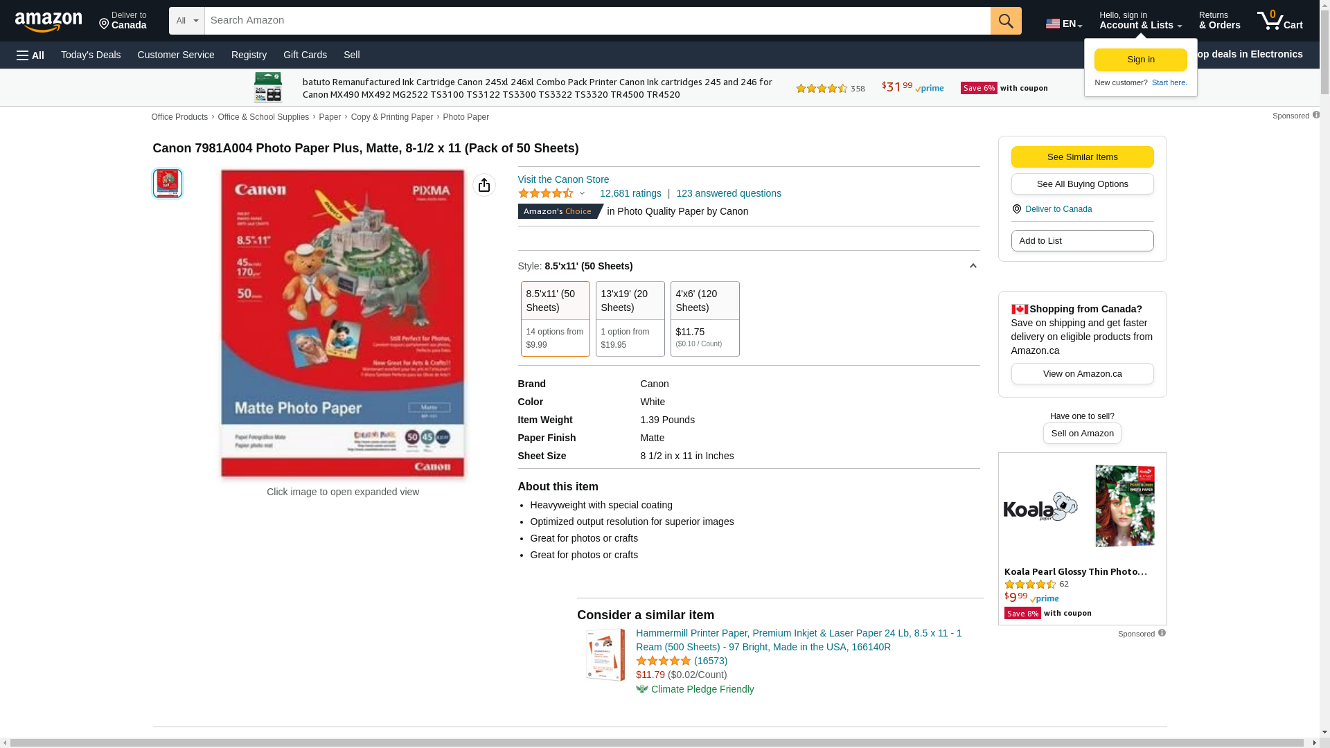 Canon 7981A004 Photo Paper Plus, Matte, 8-1/2 x 11 (Pack of 50 Sheets)