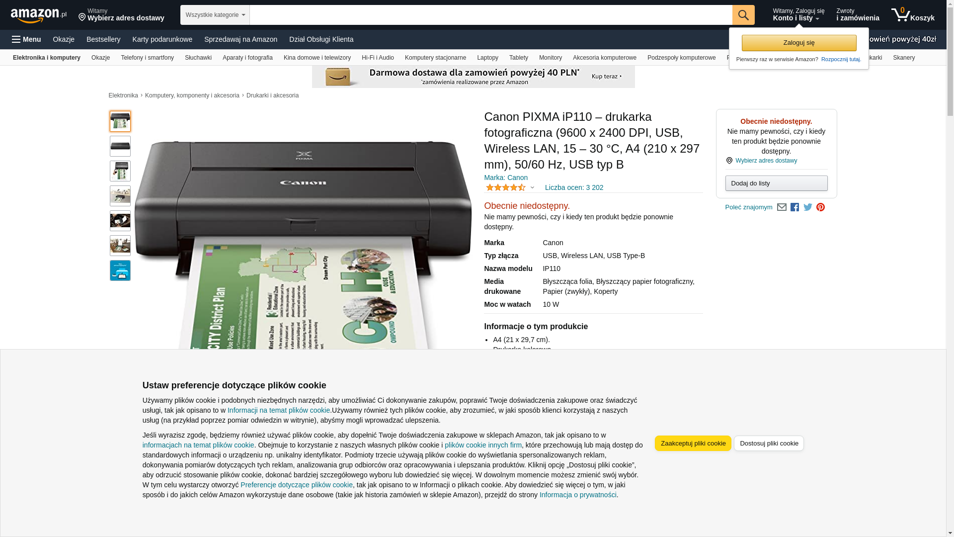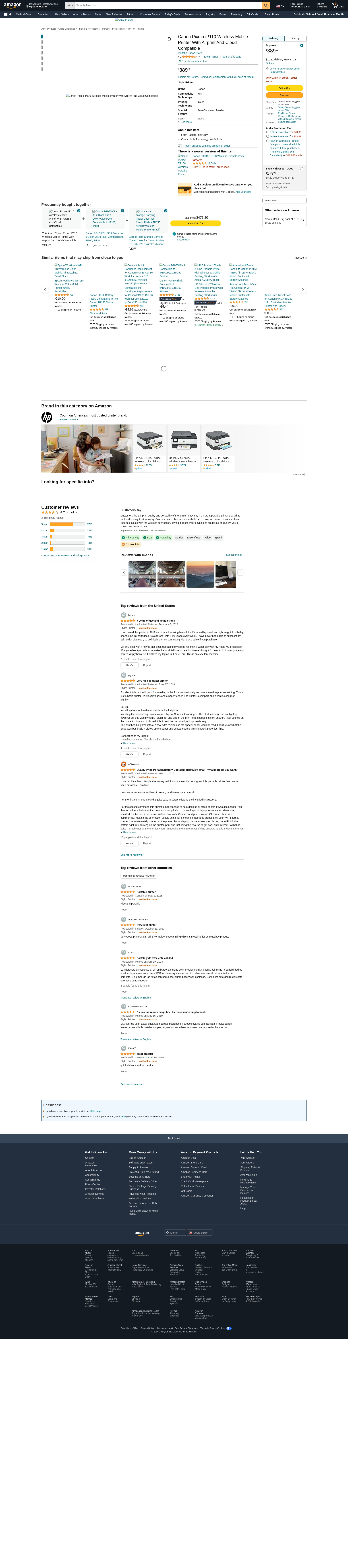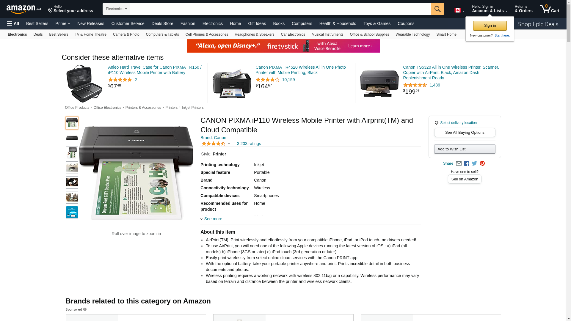 CANON PIXMA iP110 Wireless Mobile Printer With Airprint(TM) And Cloud Compatible