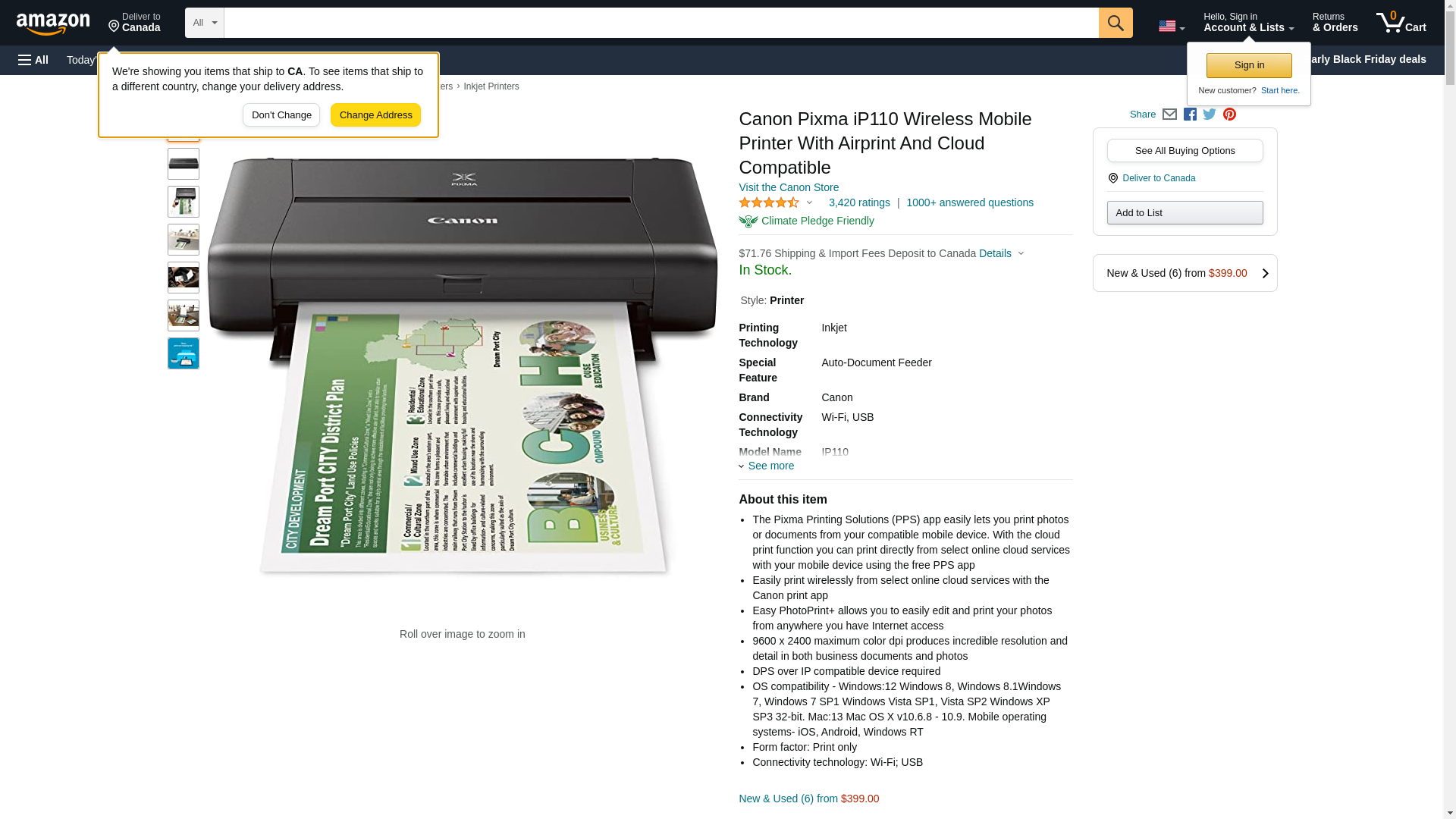 CANON PIXMA iP110 Wireless Mobile Printer With Airprint(TM) And Cloud Compatible. AirPrint(TM): Print wirelessly and ...