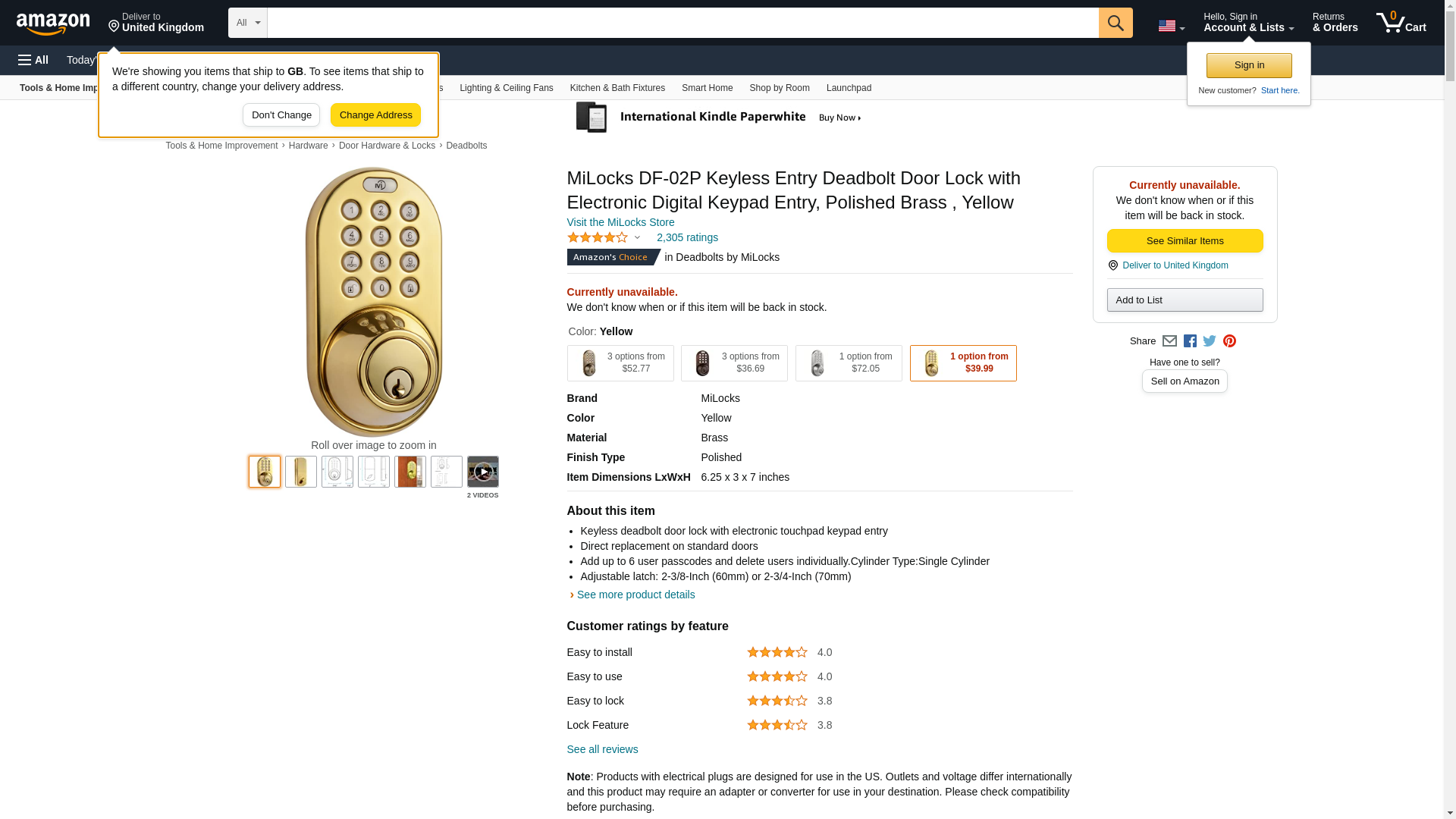 MiLocks DF-02P Keyless Entry Deadbolt Door Lock with Electronic Digital Keypad Entry, Polished Brass: Maxedbuy.com