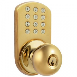 MiLocks TKK-02P Digital Door Knob Handle Lock with Electronic Keypad - Keyless Entry Smart Door Lock with Adjustable Latch Locks, Audible Tones for Interior Front Doors & More, Polished Brass