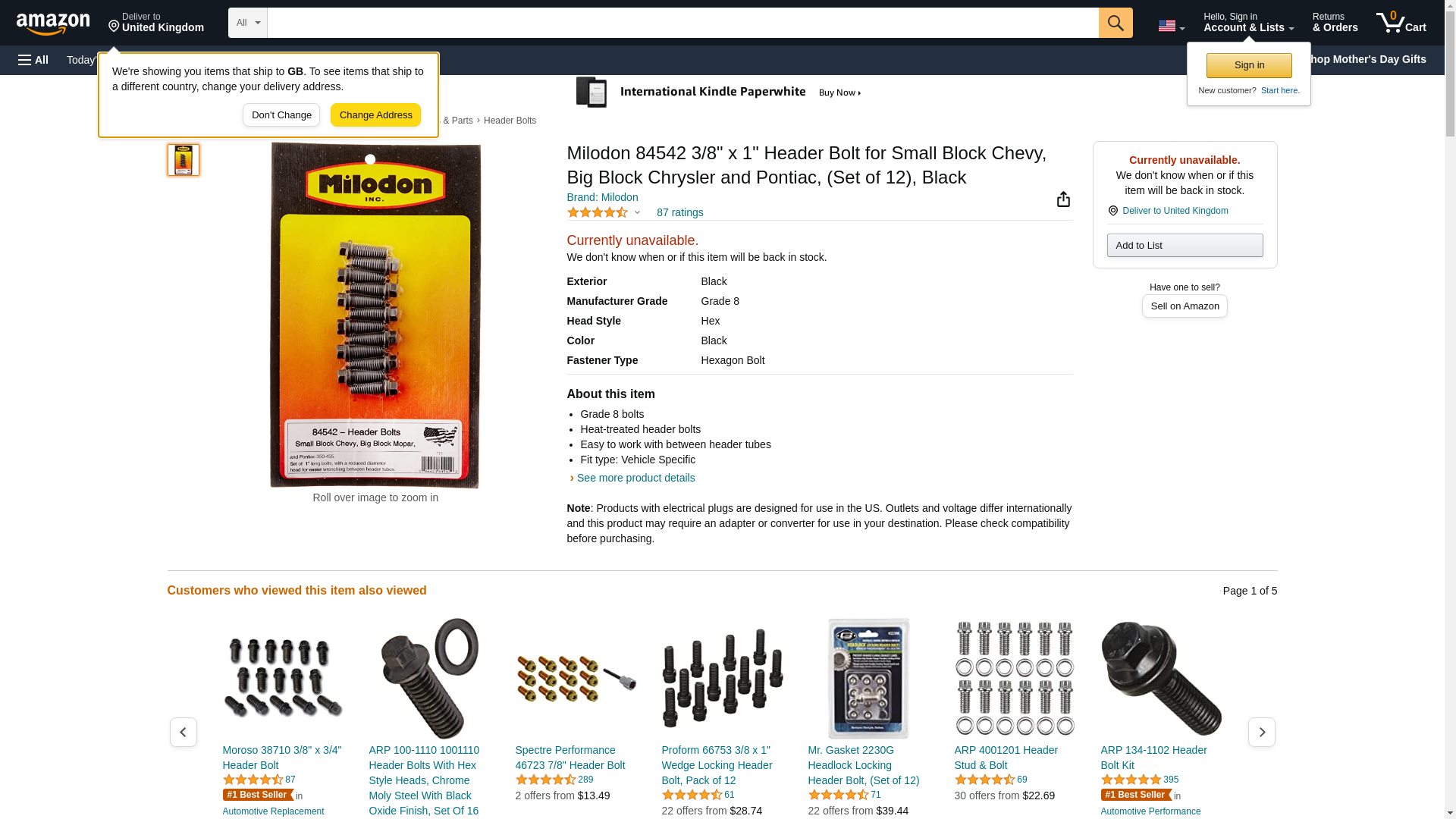 Milodon 84542 3/8" x 1" Header Bolt for Small Block Chevy, Big Block Chrysler and Pontiac, (Set of 12), Black
