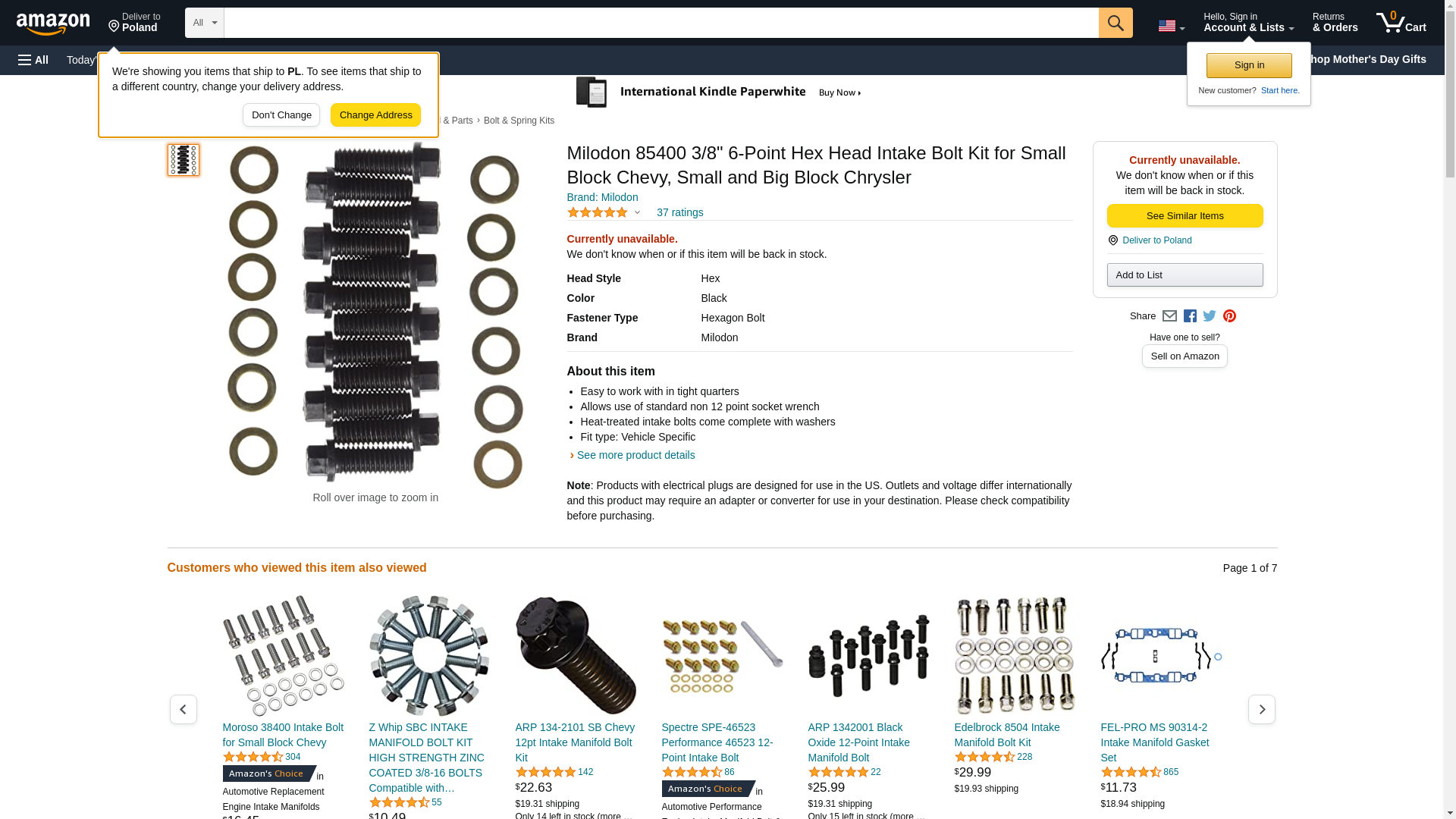 Milodon 85400 3/8" 6-Point Hex Head Intake Bolt Kit for Small Block Chevy, Small and Big Block Chrysler