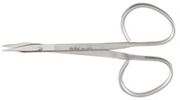 Eye Suture Scissors, 4" (10.2 cm), Ribbon Type, Slightly Curved, Sharp Points.Ribbon Type Scissors Have Extra Large Finger Rings; Shanks and Rings Have Satin Finish; Blades are Highly Polished