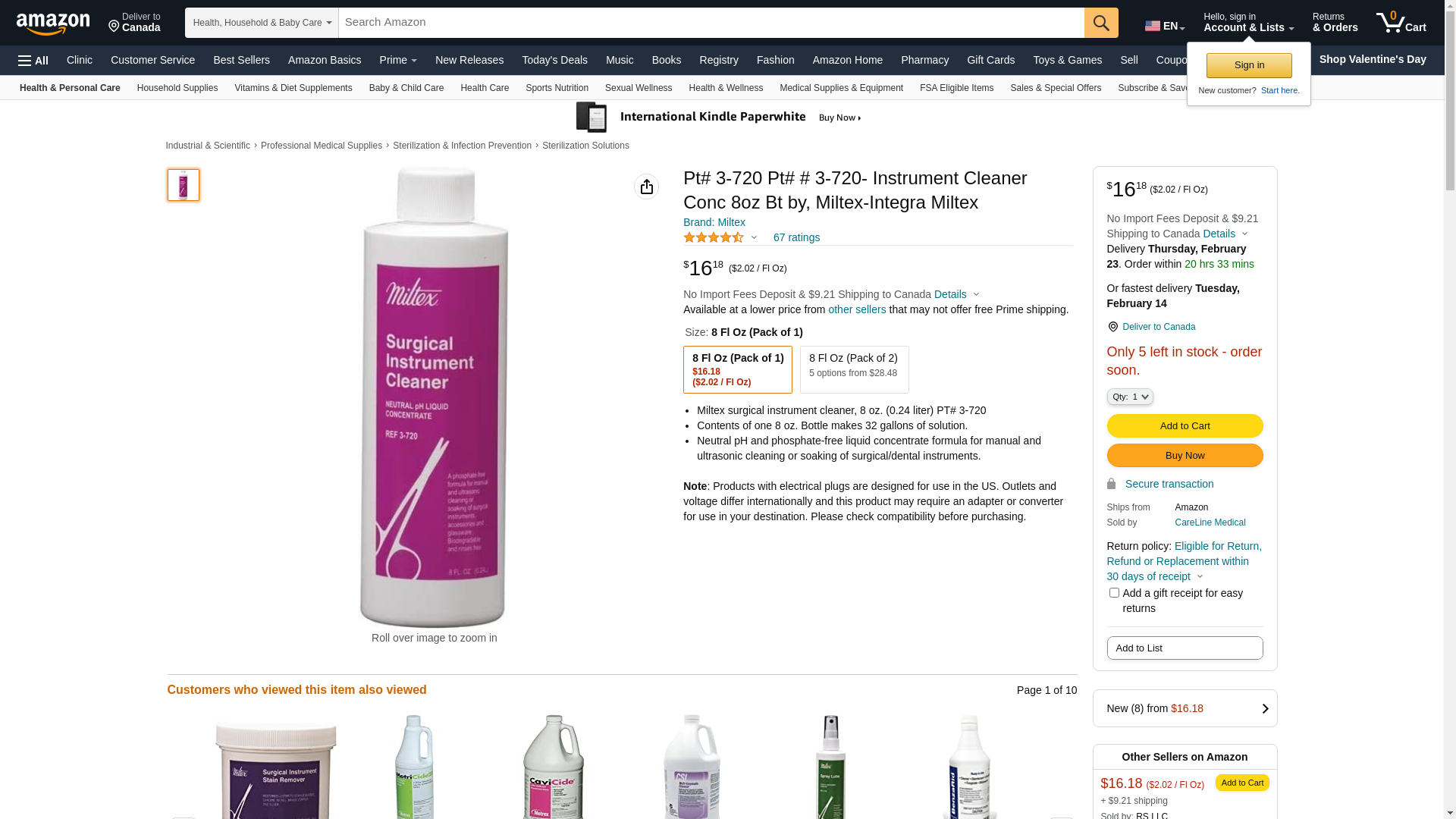 PT# 3-720 PT# # 3-720- Instrument Cleaner Conc 8Oz 8oz/Bt by, Miltex-Integra Miltex