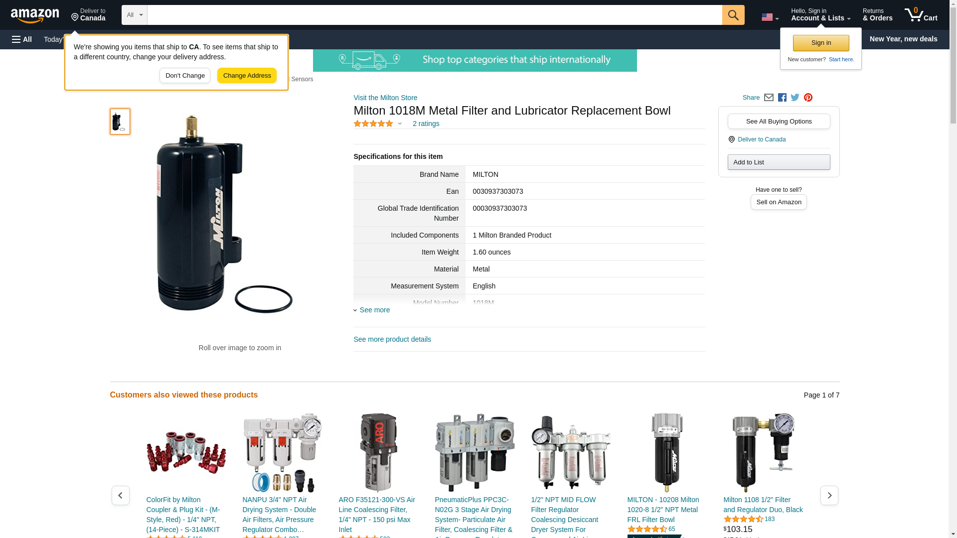- Replacement metal bowl for Milton 1/4", 3/8" and 1/2" filters