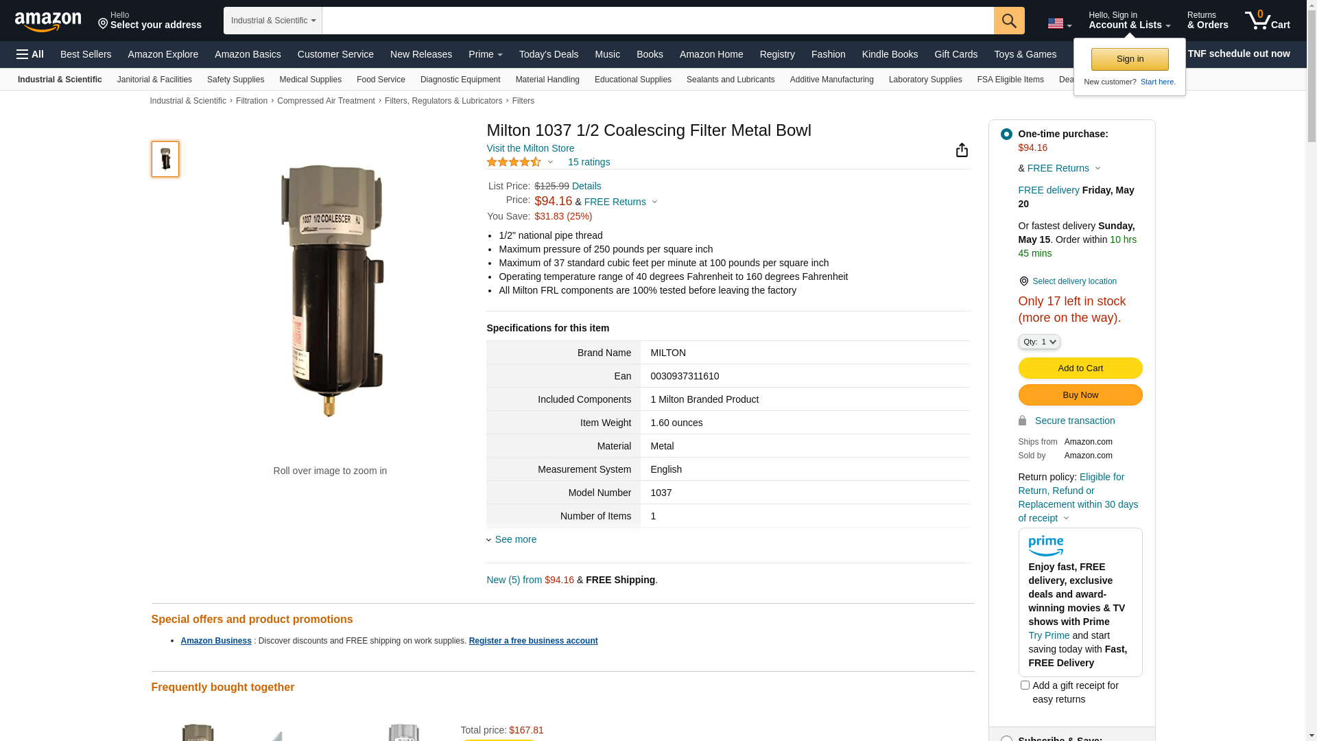 Milton 1037 1/2 Coalescing Filter Metal Bowl