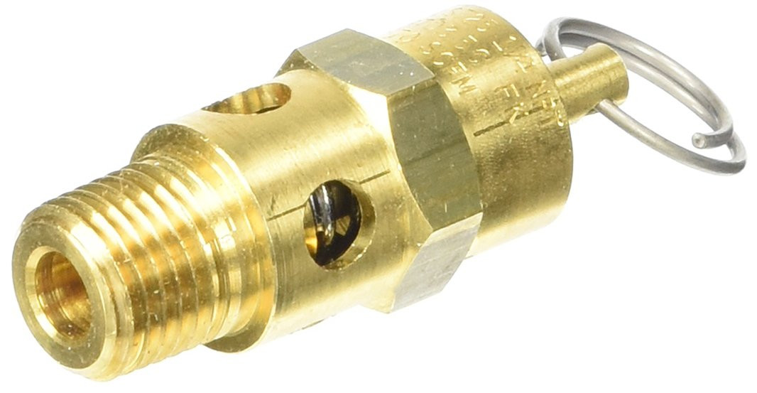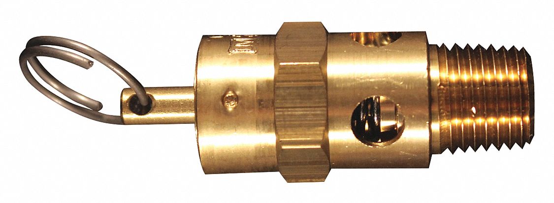 This 1/4" MNPT safety valve is ASME coded and certified by the national board of boiler and pressure vessel inspectors. Valves are interchangeable with all other ASME valves of same size and pressure. This safety valve is bubble tight to 10% of set pop off pressure and resets after pressure drops 50%. 1/4" male national pipe thread Pop off pressure of 70 pounds per square inch Air flow of 70 standard cubic feet per minute