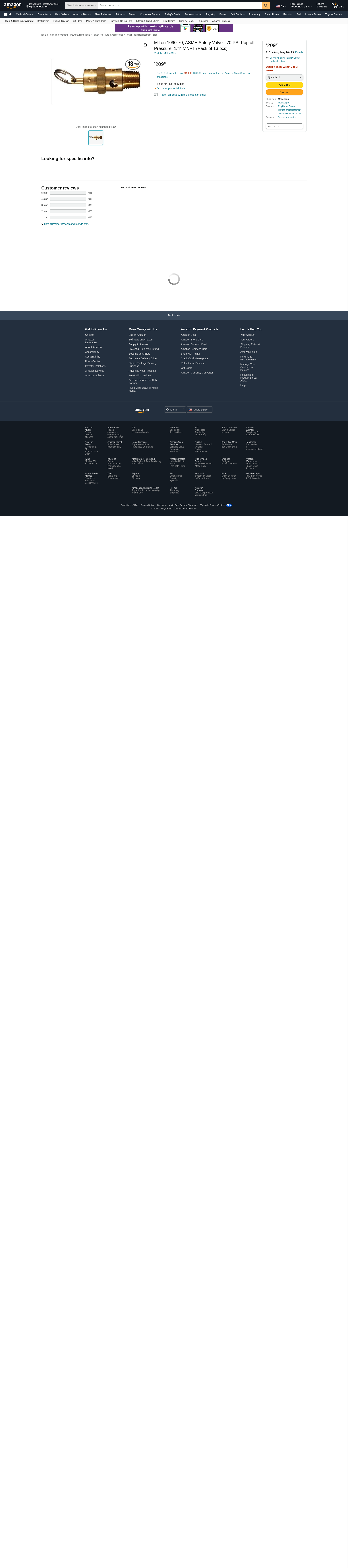 Milton 1090-70, ASME Safety Valve - 70 PSI Pop off Pressure, 1/4" MNPT (Pack of 13 pcs)