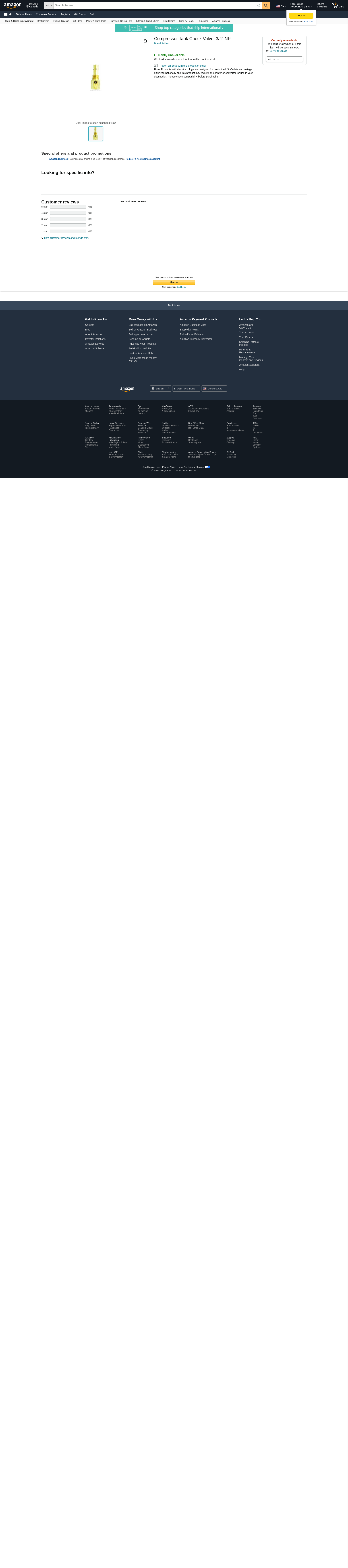 Milton - 1091-2 1092-2 3/4" NNPT Compressor Tank Check Valve