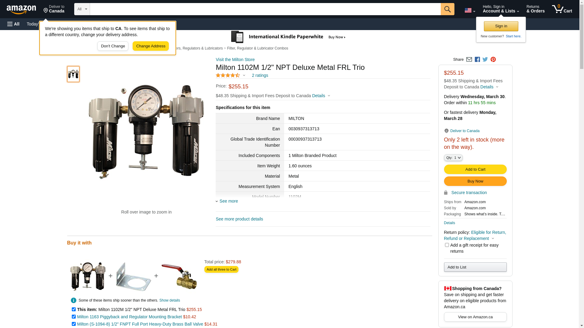 Milton 1102M 1/2" NPT Deluxe Metal FRL Trio