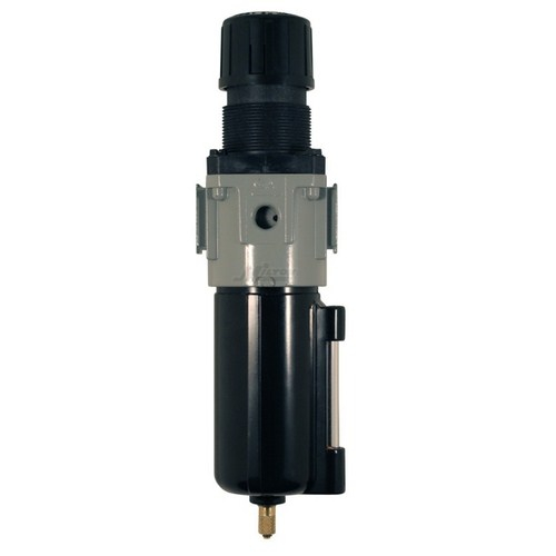 Milton, -288905, 1/4" NPT Metal Piggyback Filter Regulator with Sight Glass and Overnight Drain 1/4" NPT piggyback duo has the features of the standard regulator, plus the space saving convenience of a combined filter. This piggyback filter regulator comes with a 6 ounce metal bowl and a 40 micron filter. With an automatic overnight drain and relieving regulator, this duo offers a non-rising adjustment and a 3 position knob to lock, adjust or remove. Has a Maximum pressure of 200 PSI and 50 SCFM. Features 1/4" national pipe thread Visible sight glass to monitor water level Includes a 40 micron bronze sintered filter