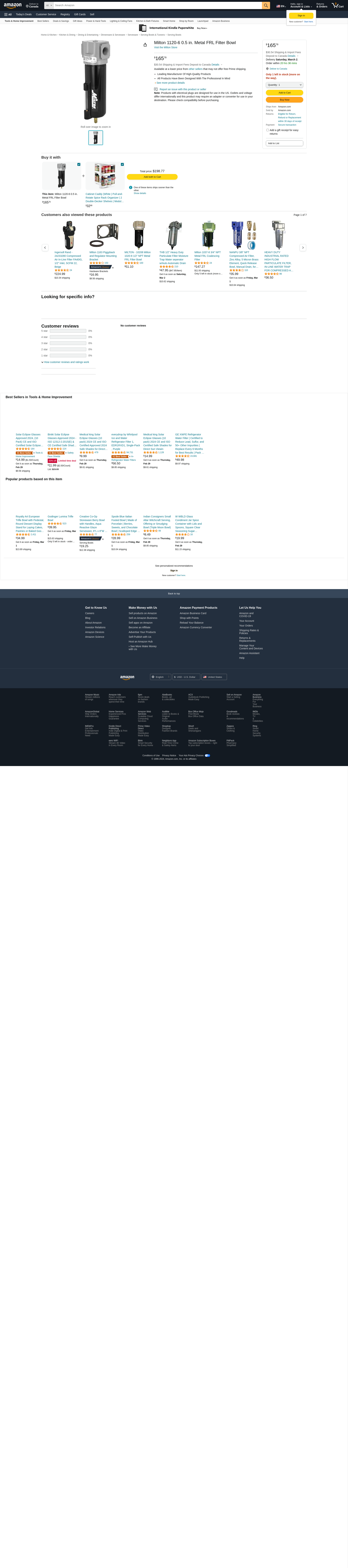 Milton 1120-6 0.5 in. Metal FRL Filter Bowl
