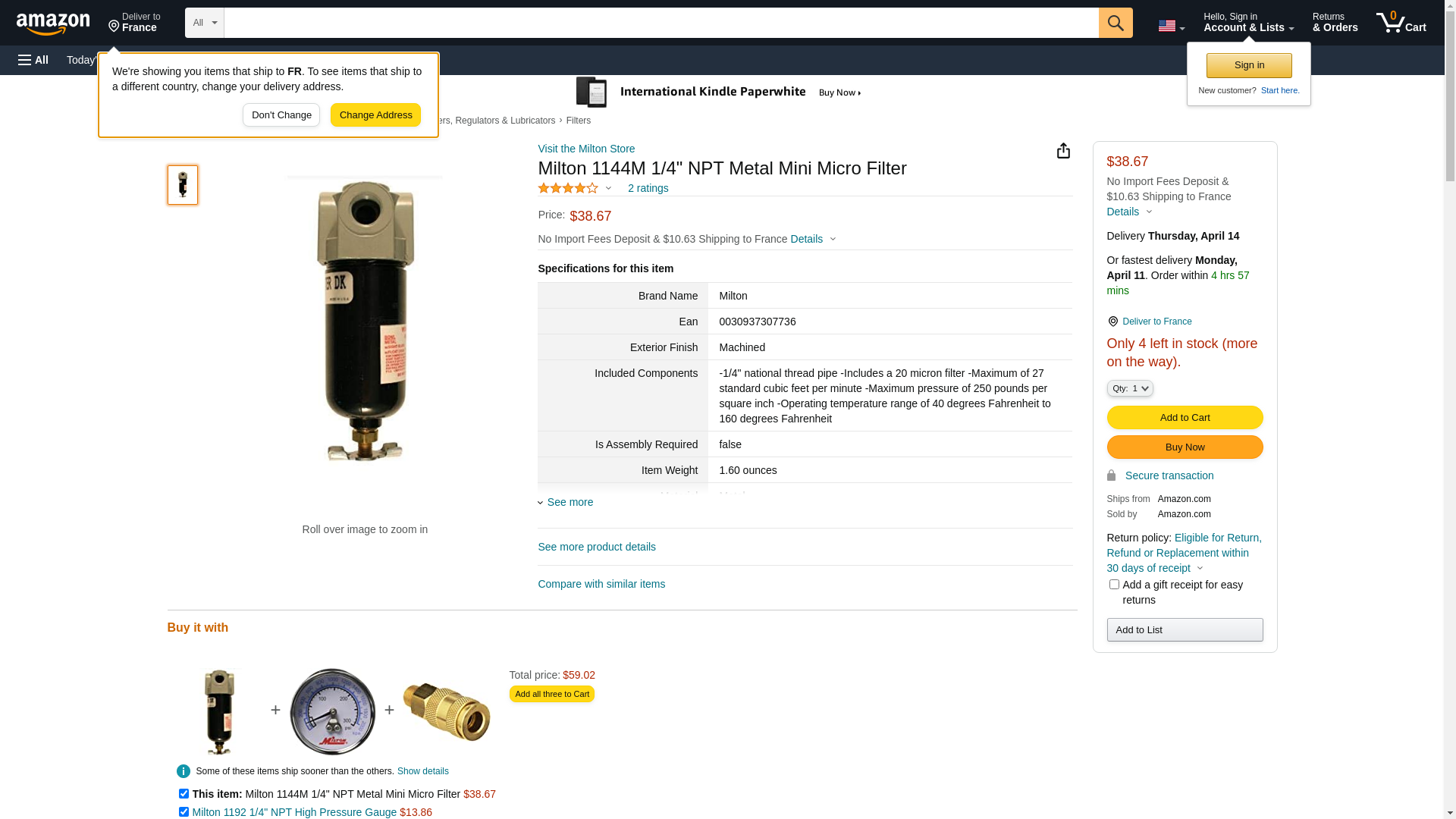 Milton 1144M, Metal Mini Micro Filter, 1/4" NPT (Pack of 4 pcs)